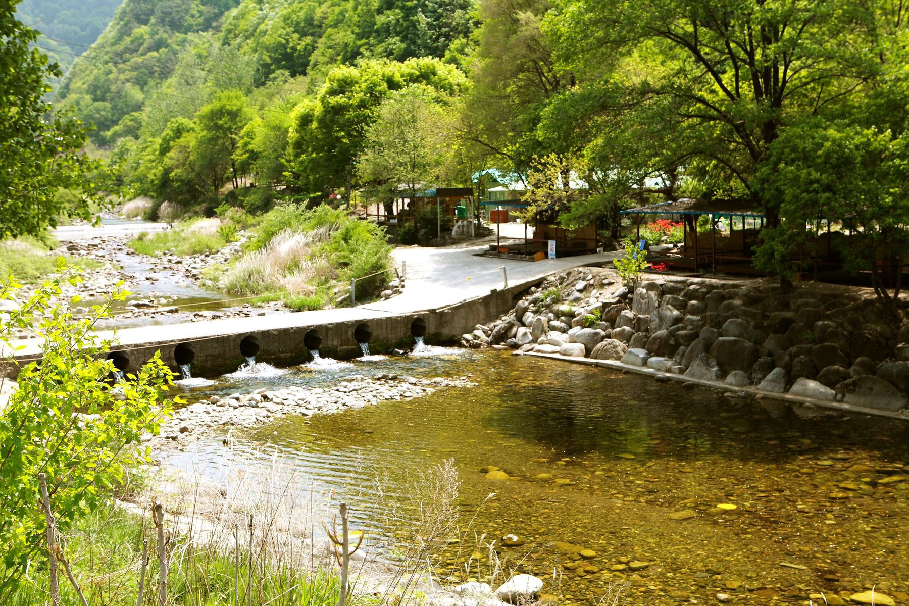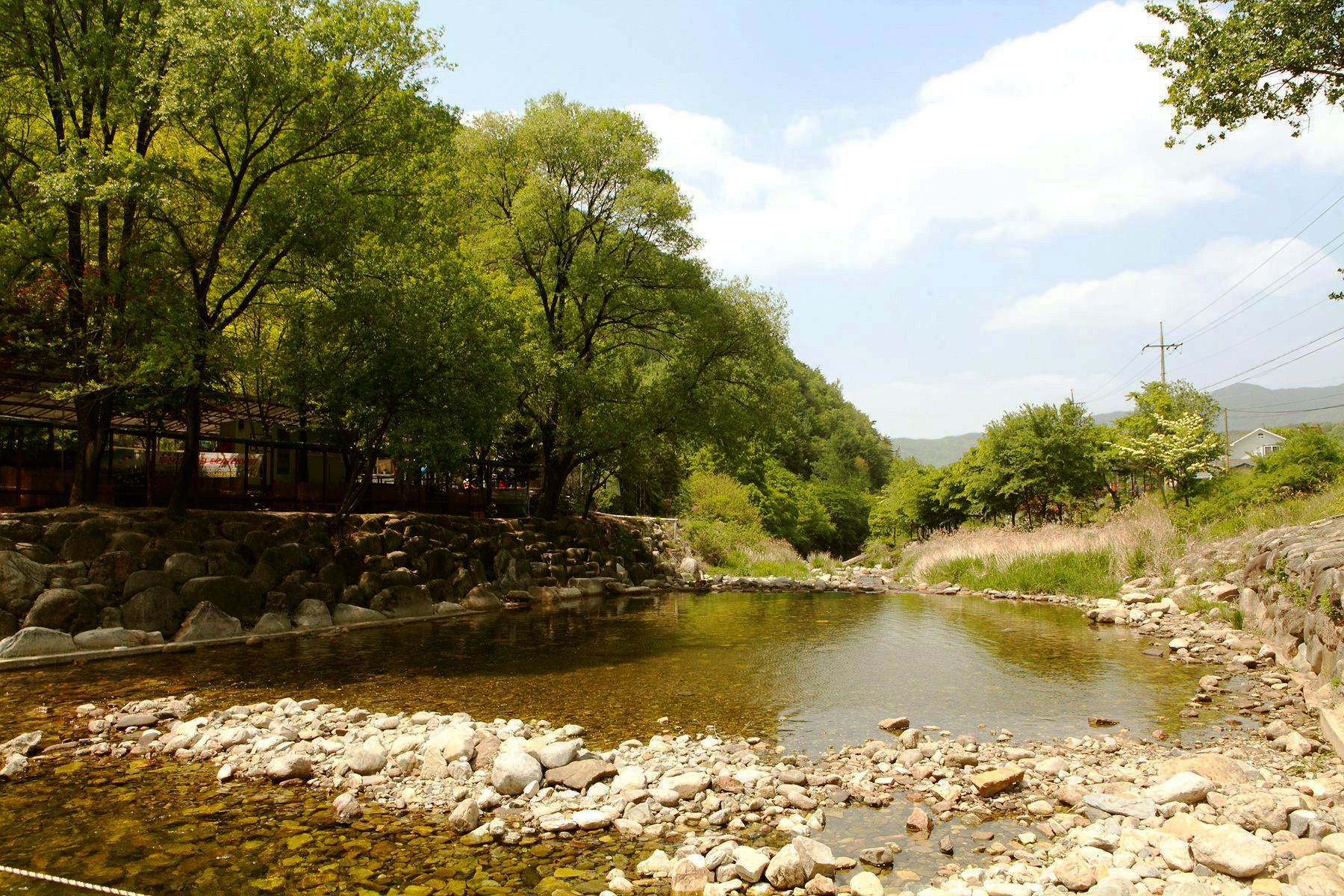 명희농장의 계곡 앞 물가에는 평상도 마련되어 있어 거창한 여름휴가지가 아니더라도