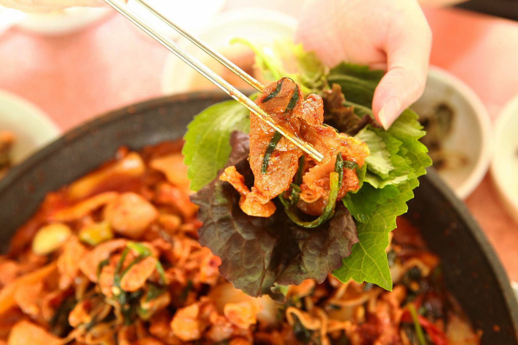 상추와 깻잎에 싸서 먹으면 그 향과 맛이 아주 좋아 손이 계속 가게되는 명희농장의 오리불고기!