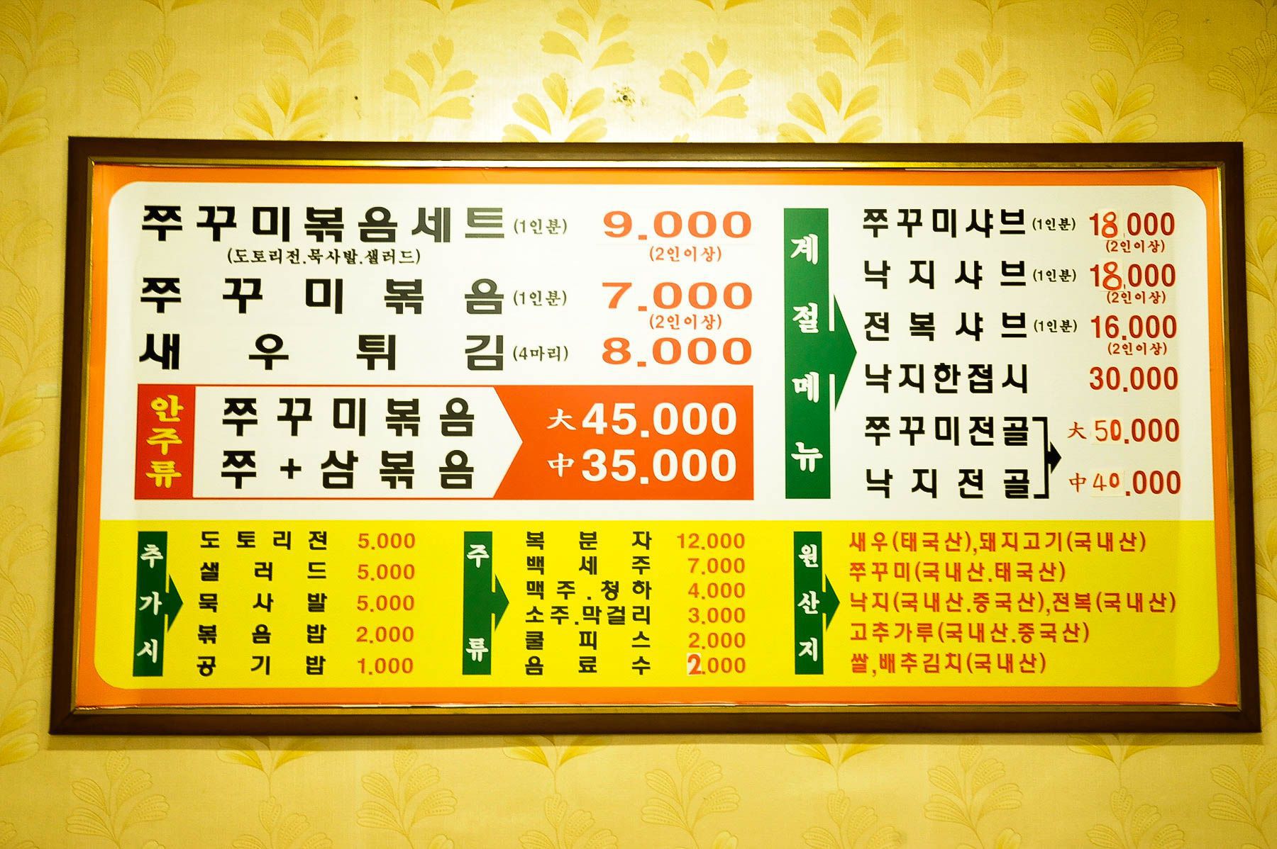 살아있는 쭈꾸미를 이용한 다양한 메뉴가 있어 남녀노소 함께 식사하기 좋은 장소랍니다.