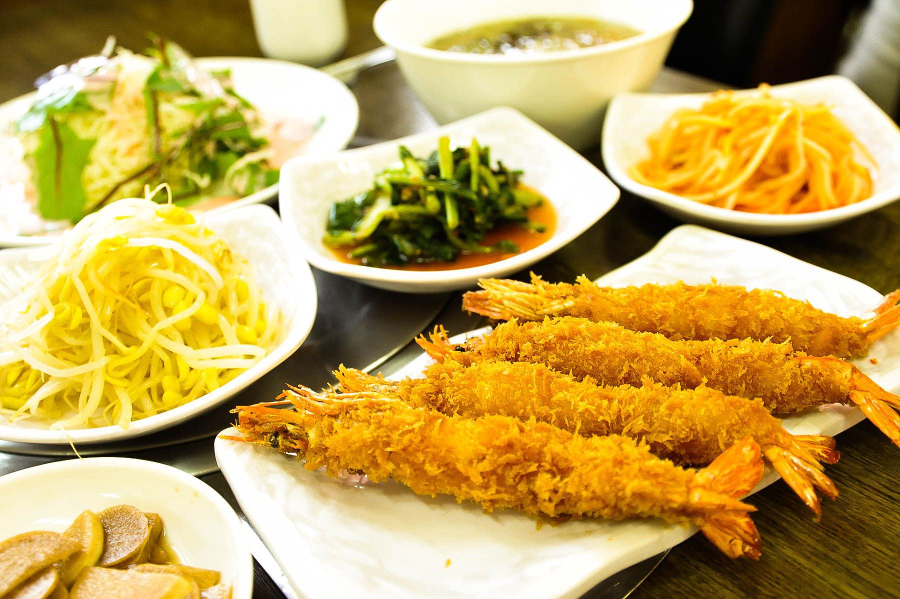 어른들이 좋아하는 묵사발과 아이들이 좋아하는 고소한 새우튀김이 함께 나오니