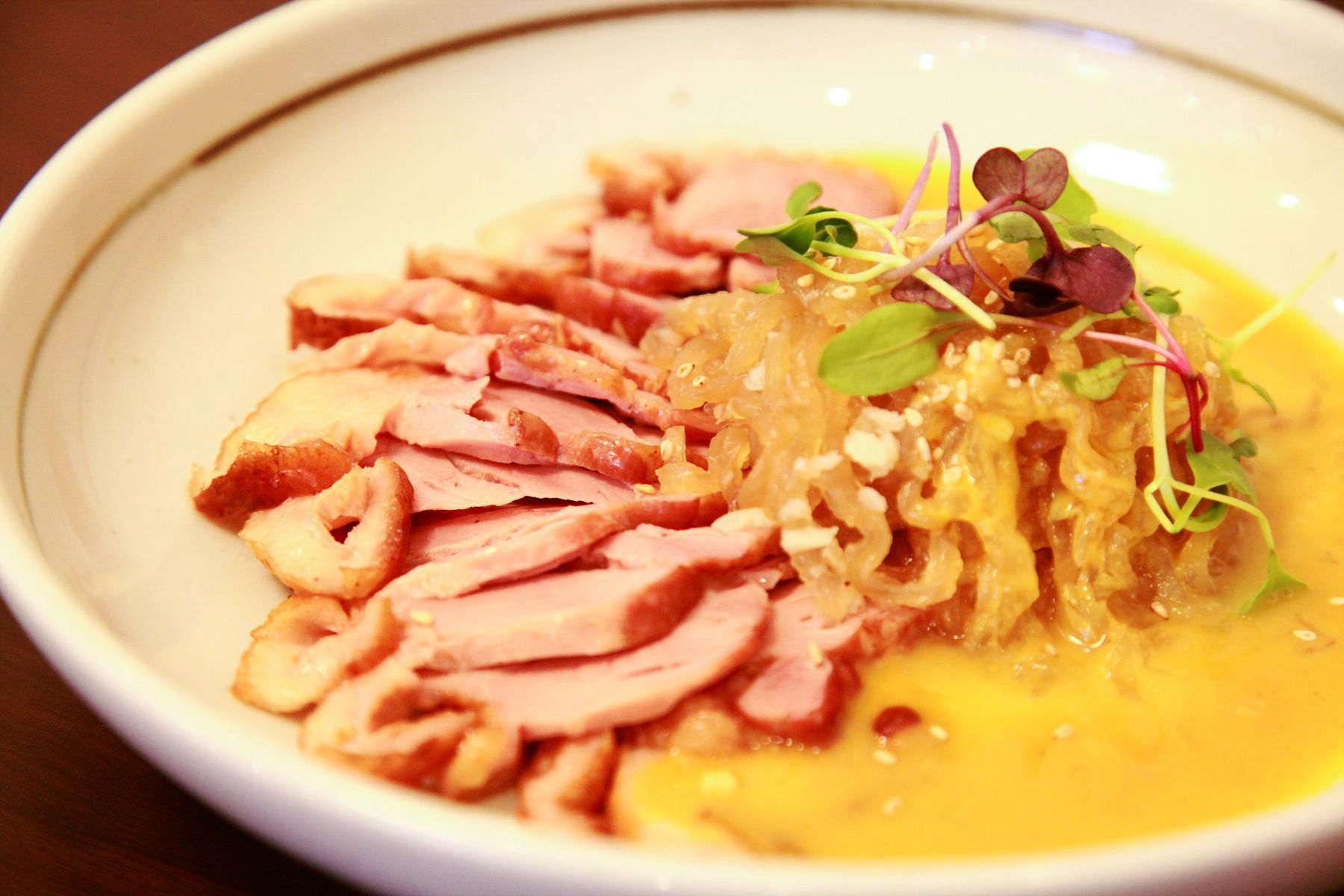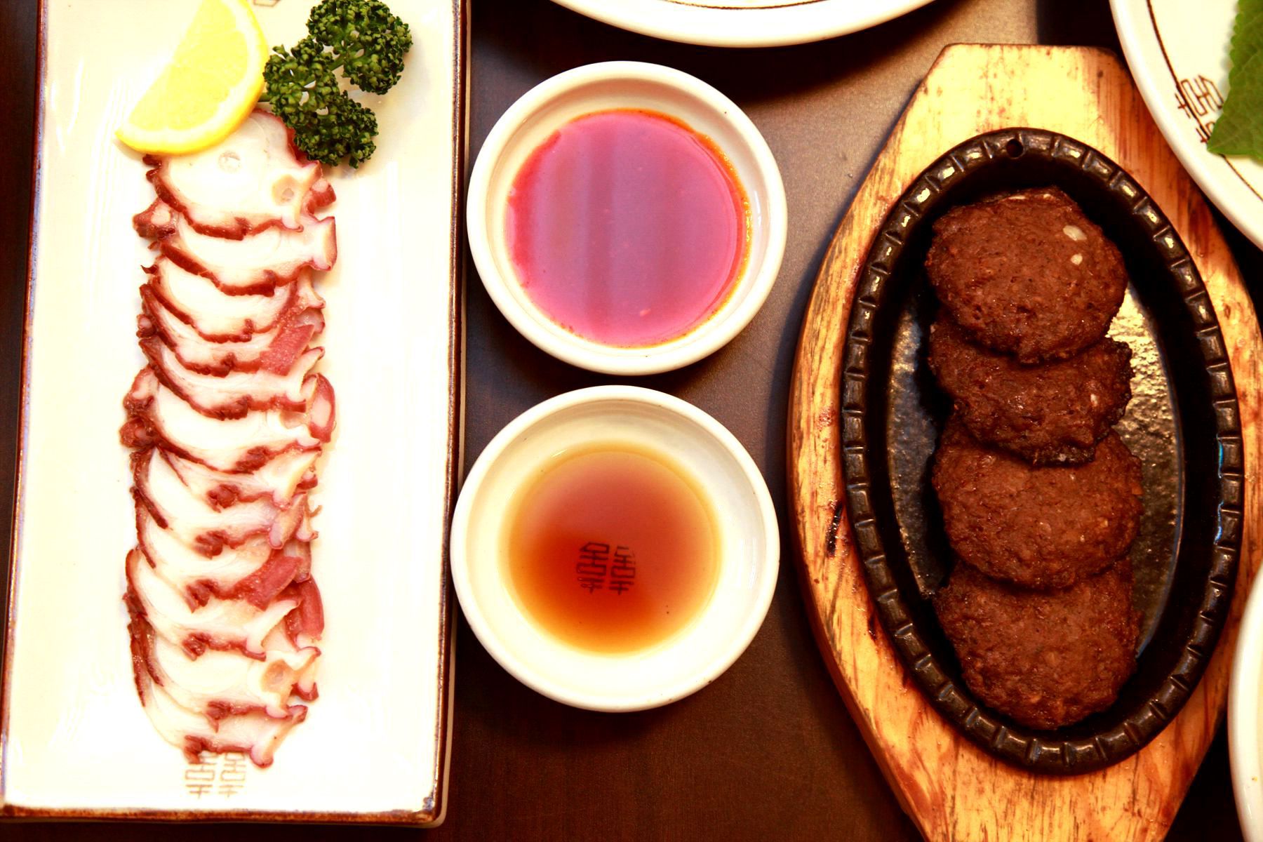 쫀듯쫀듯 씹는감이 뛰어난 돌문어숙회시원한맛과 새콤한맛이 일품인 오리훈제냉채,