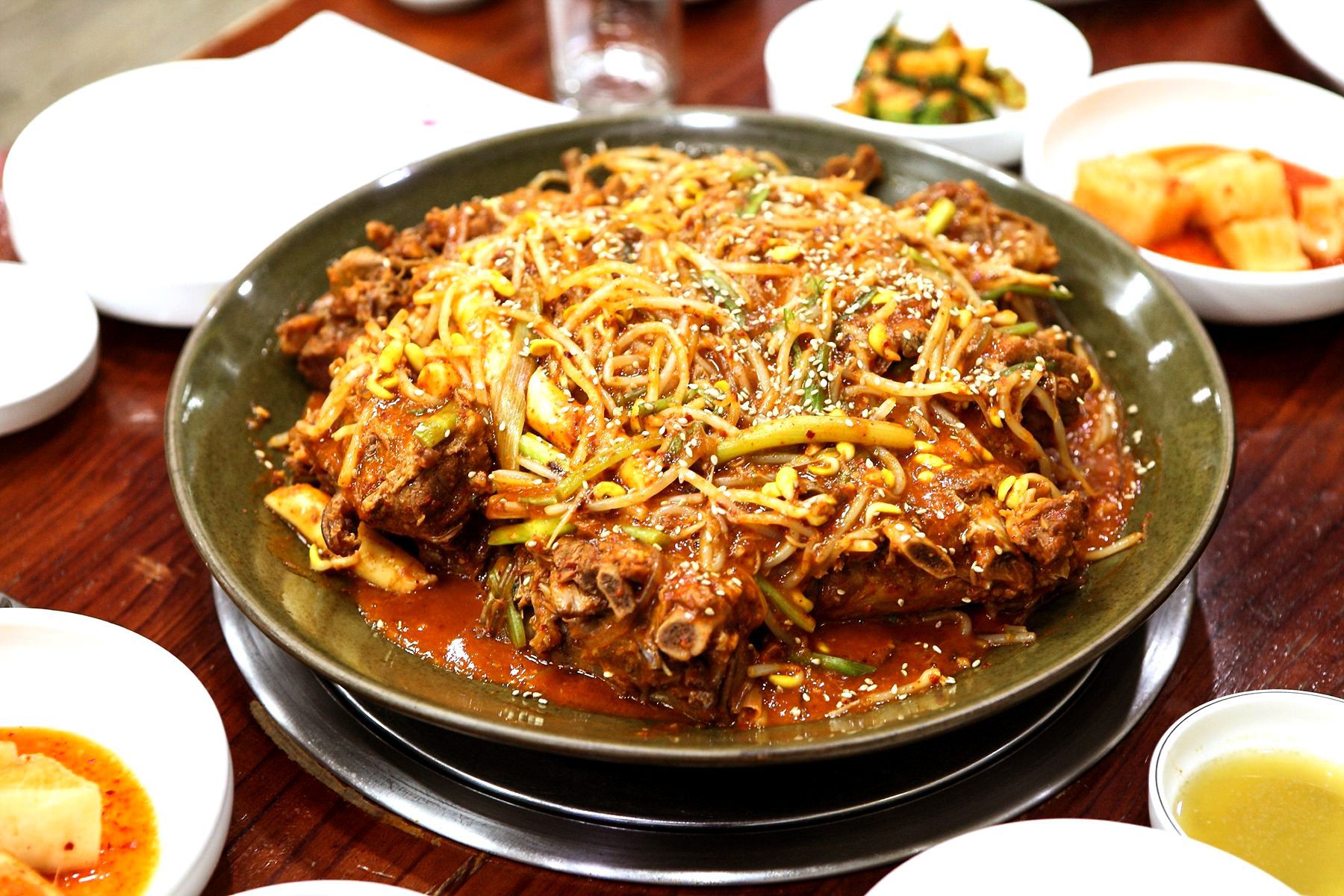 아삭아삭한 콩나물과 큰 돼지뼈들이 매콤한 양념과 한때 어울려 맛있으며 푸짐함에 한번 더 놀라는 메뉴랍니다.