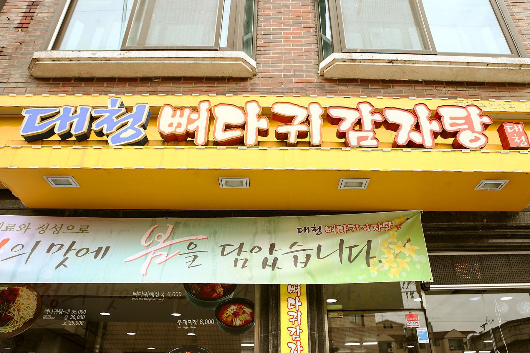 변함없는 맛과 서비스로 찾아오는 손님들을 맞이하는 이 곳은 '대청뼈다귀감자탕'입니다.