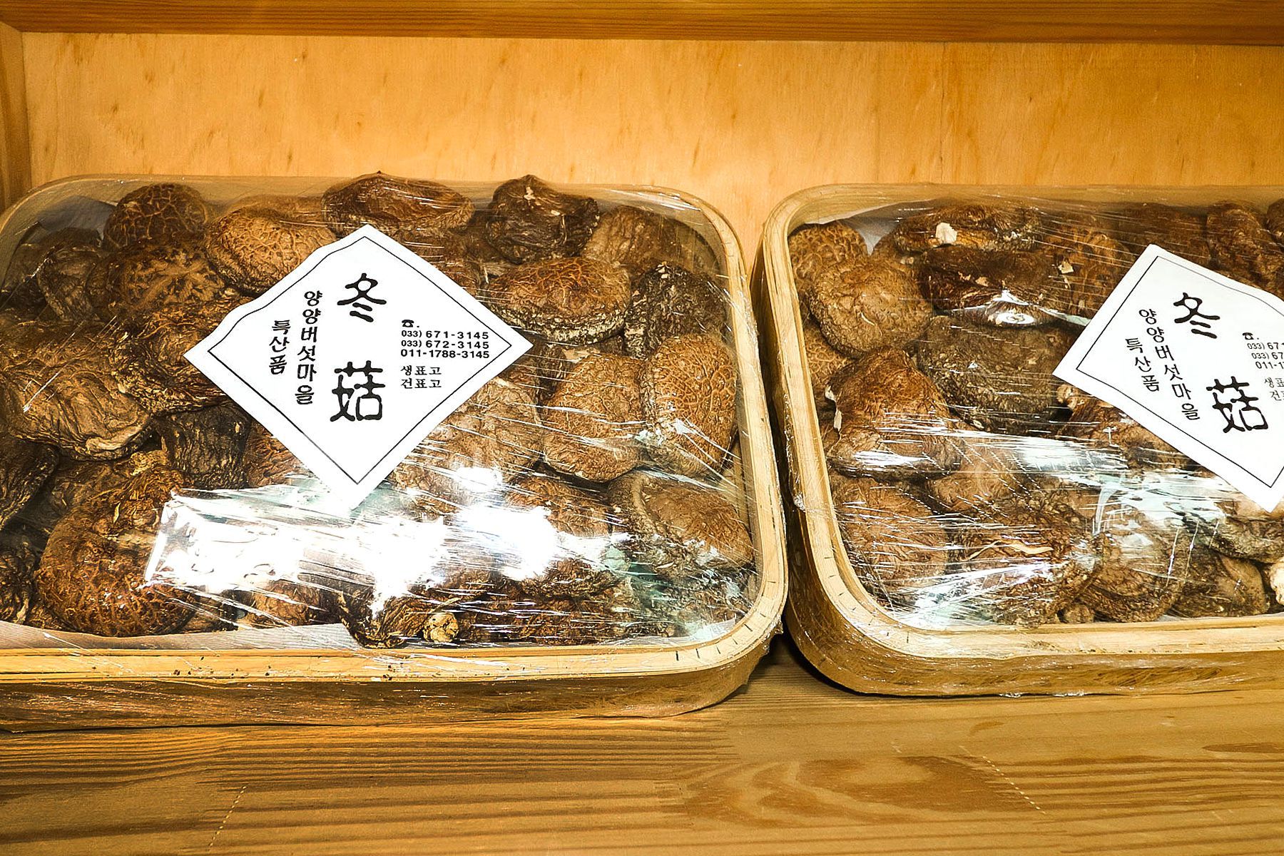 식당 입구에서는 강원도의 특산물과 더불어 직접 재배한 버섯을 판매하고 있답니다.