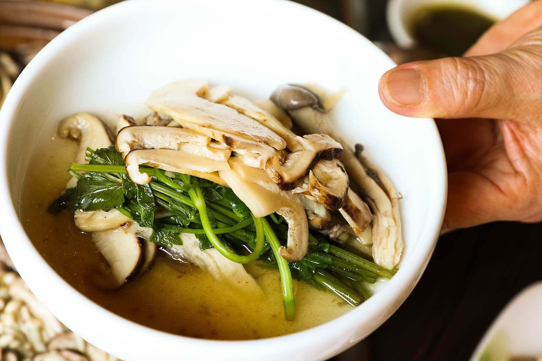 산 속의 고기라 불리는 버섯들이 육수에서 잘익으면 건져 먹으면