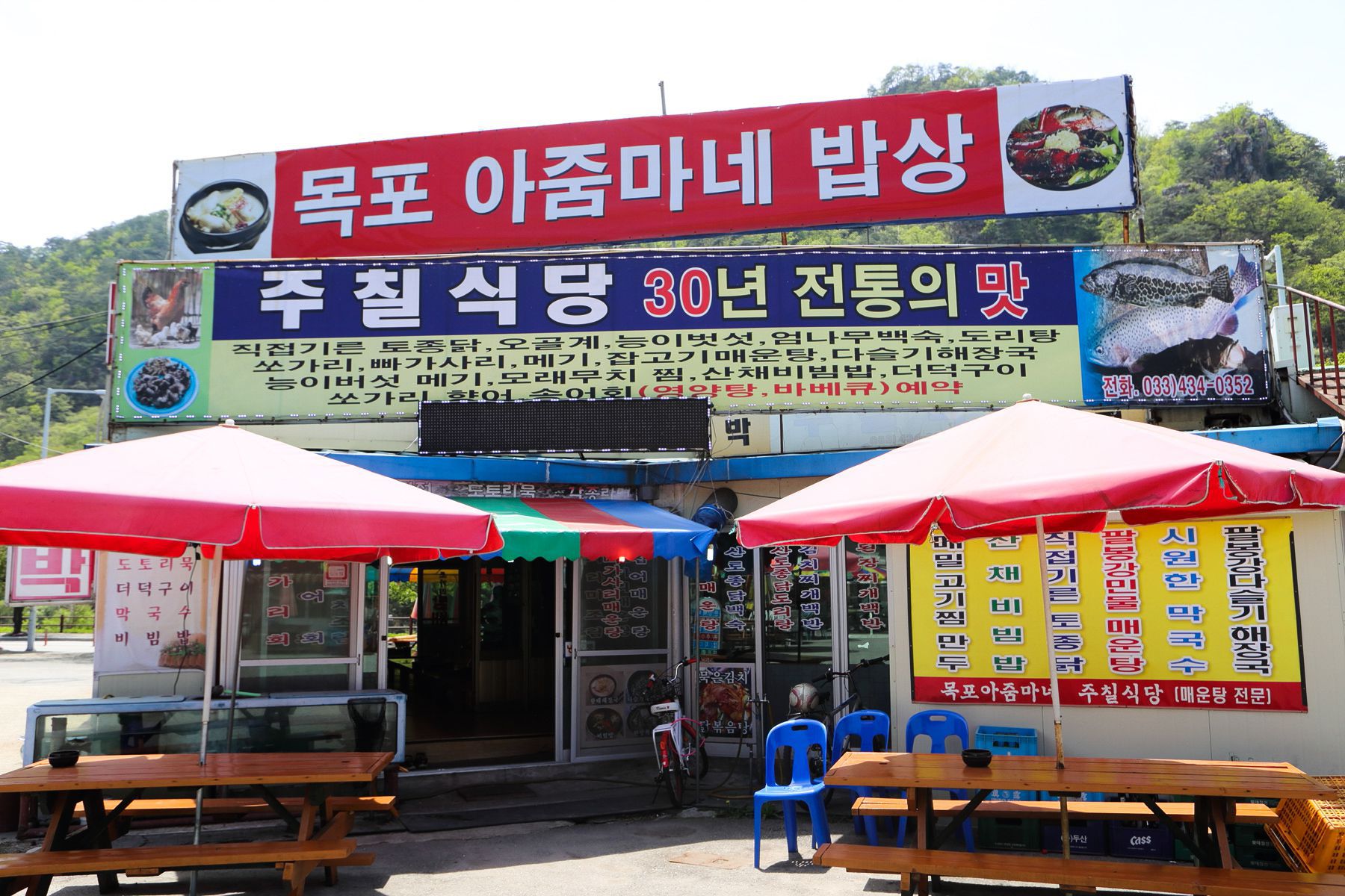 강원도 홍천 팔봉산유원지에 있는 목포아줌마 주칠식당은 30년 전통의 맛을 느낄 수 있는 맛집입니다.