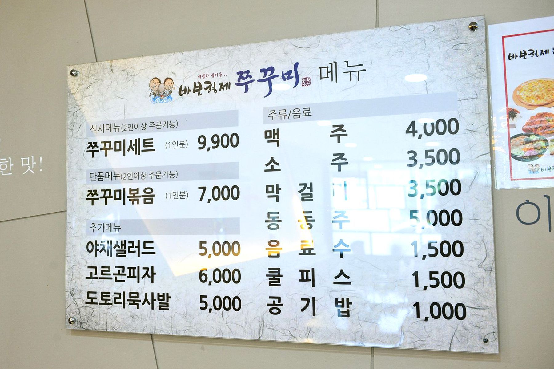 저렴한 가격에 세트로 즐겨보시고 싶다면 '바보형제쭈꾸미(고현점')으로 오시기바랍니다~^^