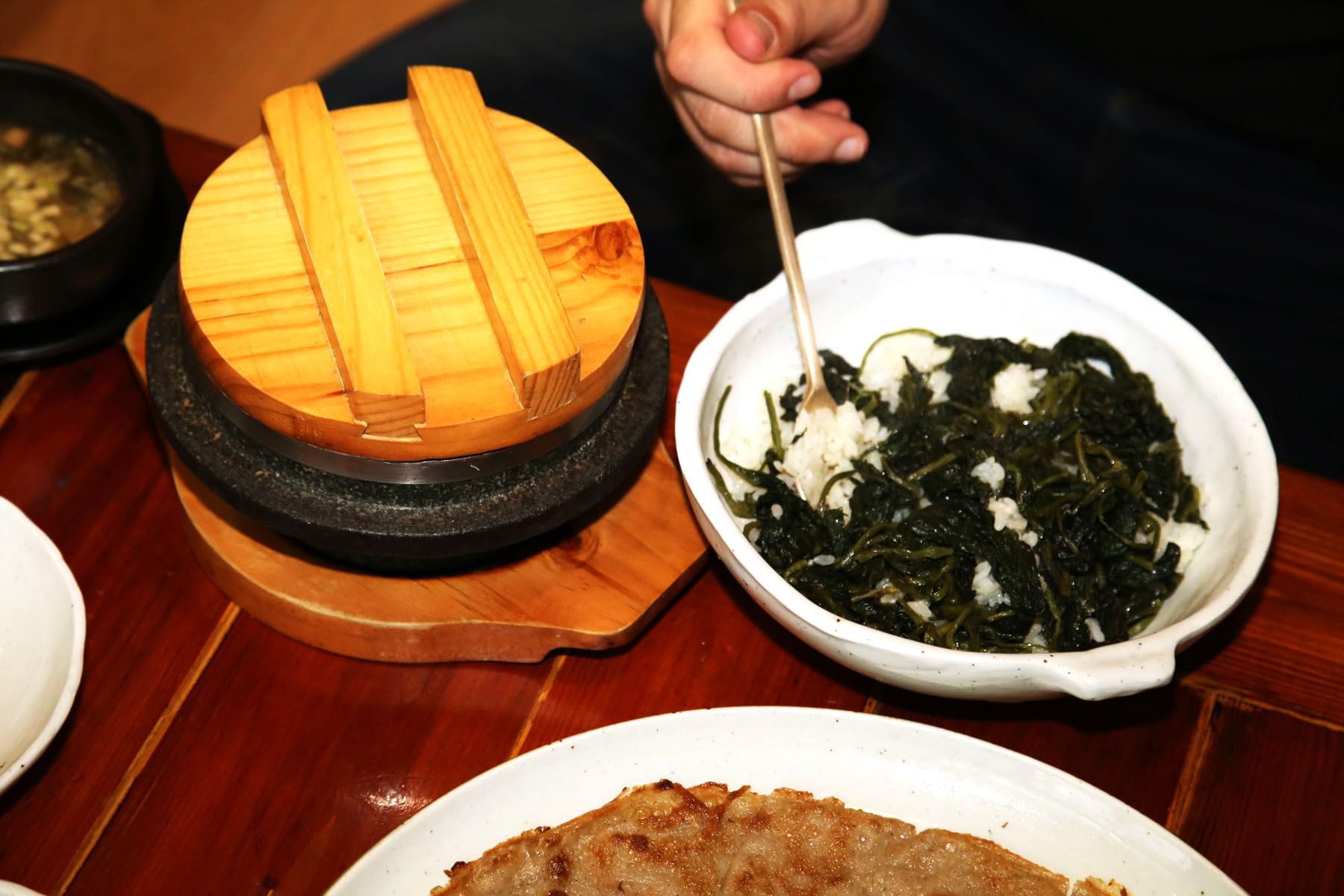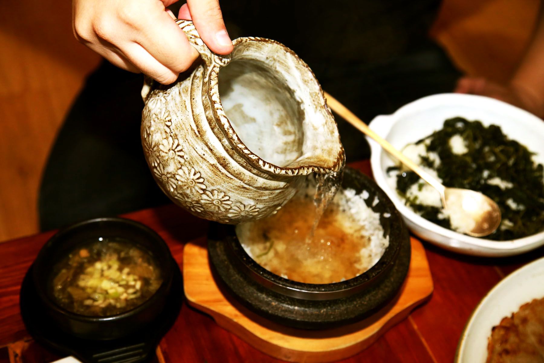 돌솥의 밥을 다 뜨고 숭늉을 부어두시면 구수한 밥숭늉을 함께 맛보실 수 있습니다.