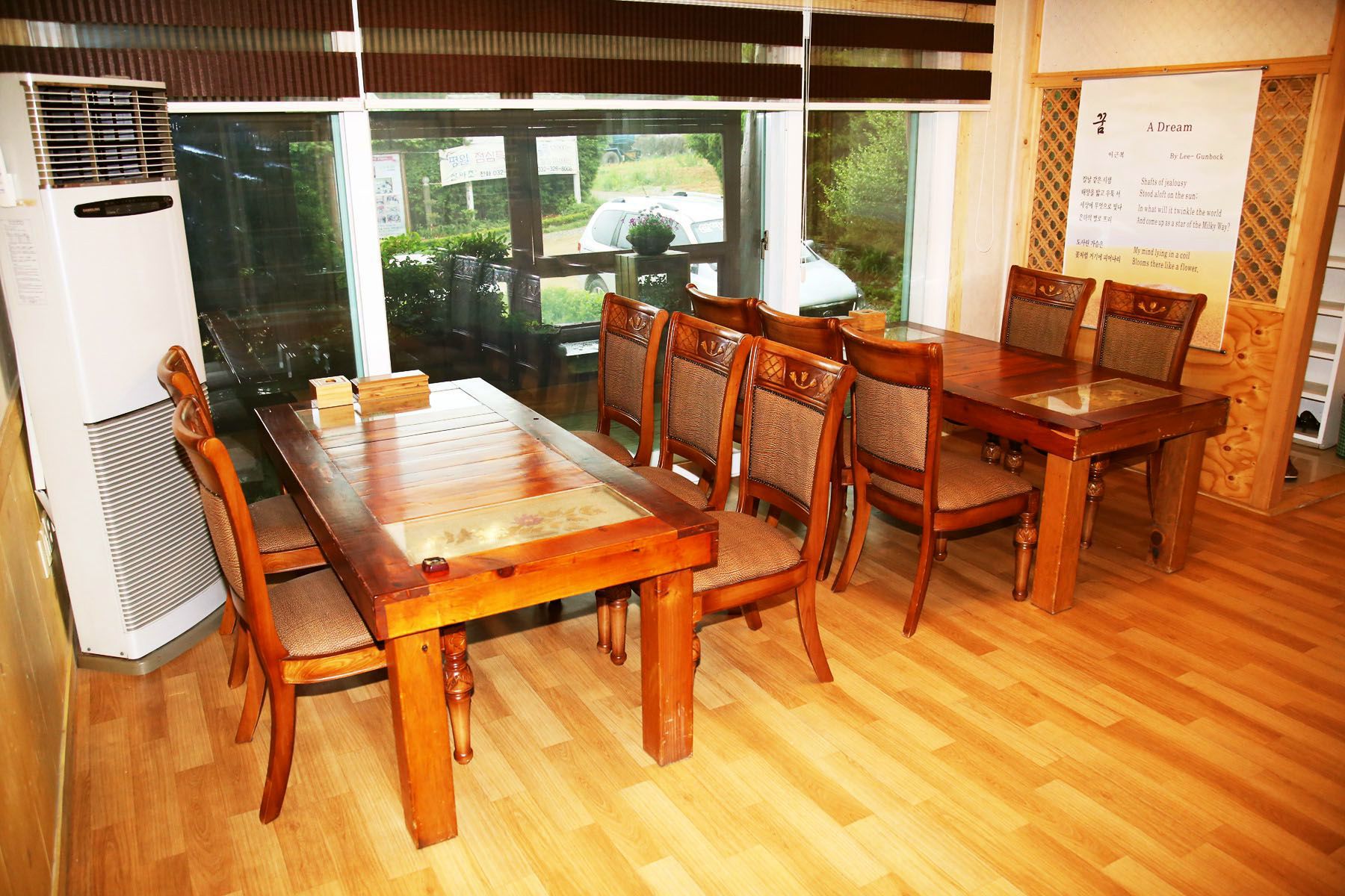 깔끔하고 멋스런 실내에서는 입식테이블과 좌식테이블 모두 준비되어 있습니다.