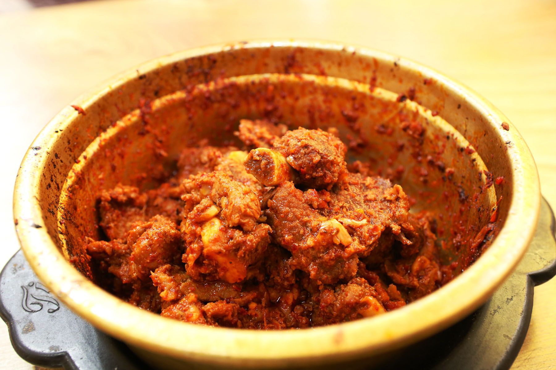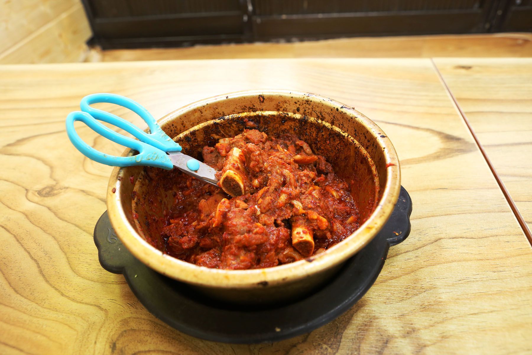 양은냄비에 양념이 잘 베인 갈비가 한가득 담겨져 나왔습니다.