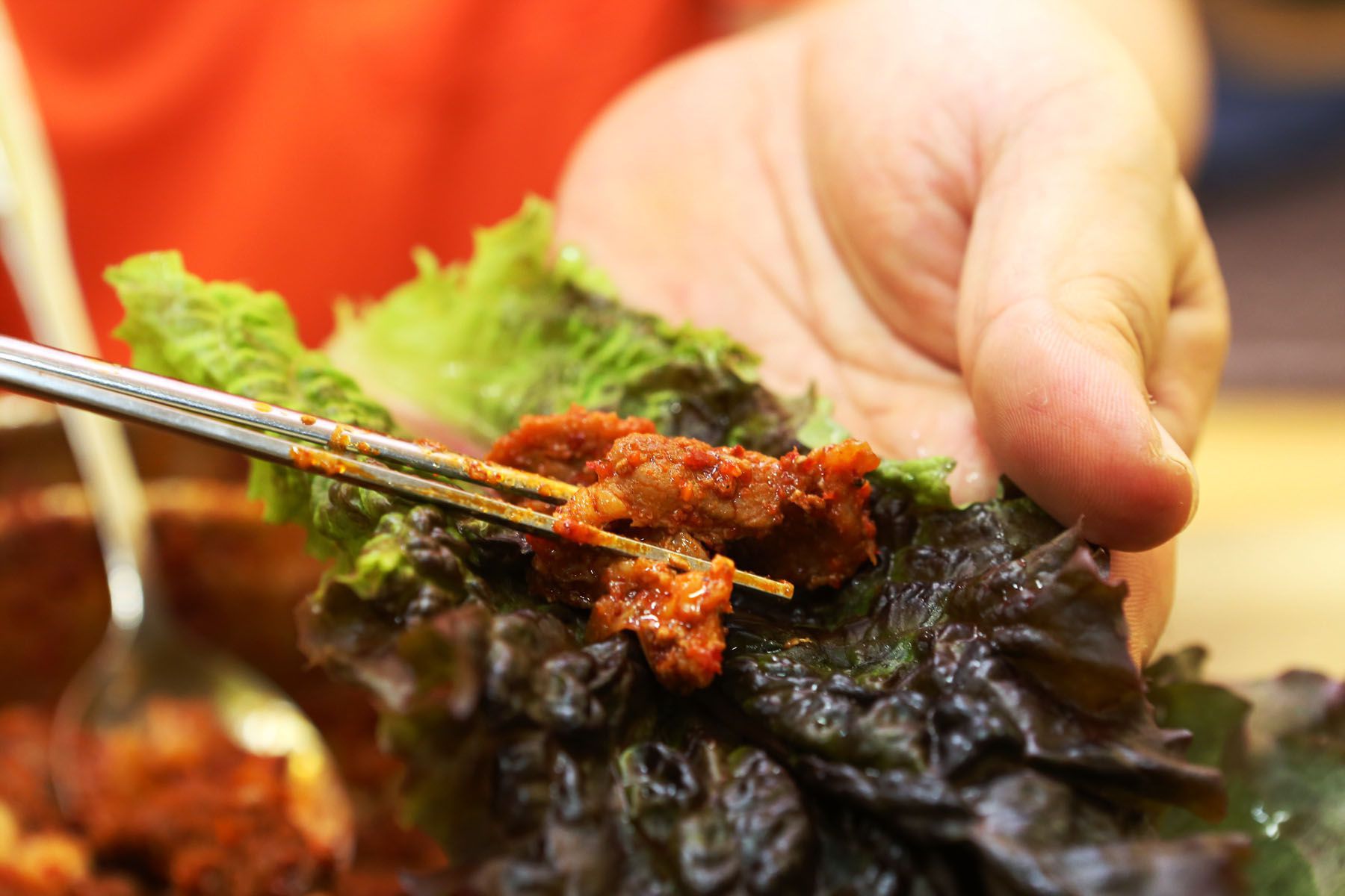 기본으로 제공되어지는 신선한 야채에 갈비살을 싸서 드시면 아삭아삭 씹는 상추맛과 잘 어우러지는 갈비맛을 느끼실 수 있으며