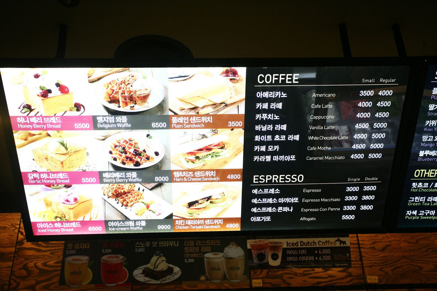 다양한 커피종류와 음료,차,사이드메뉴가 준비되어있습니다.