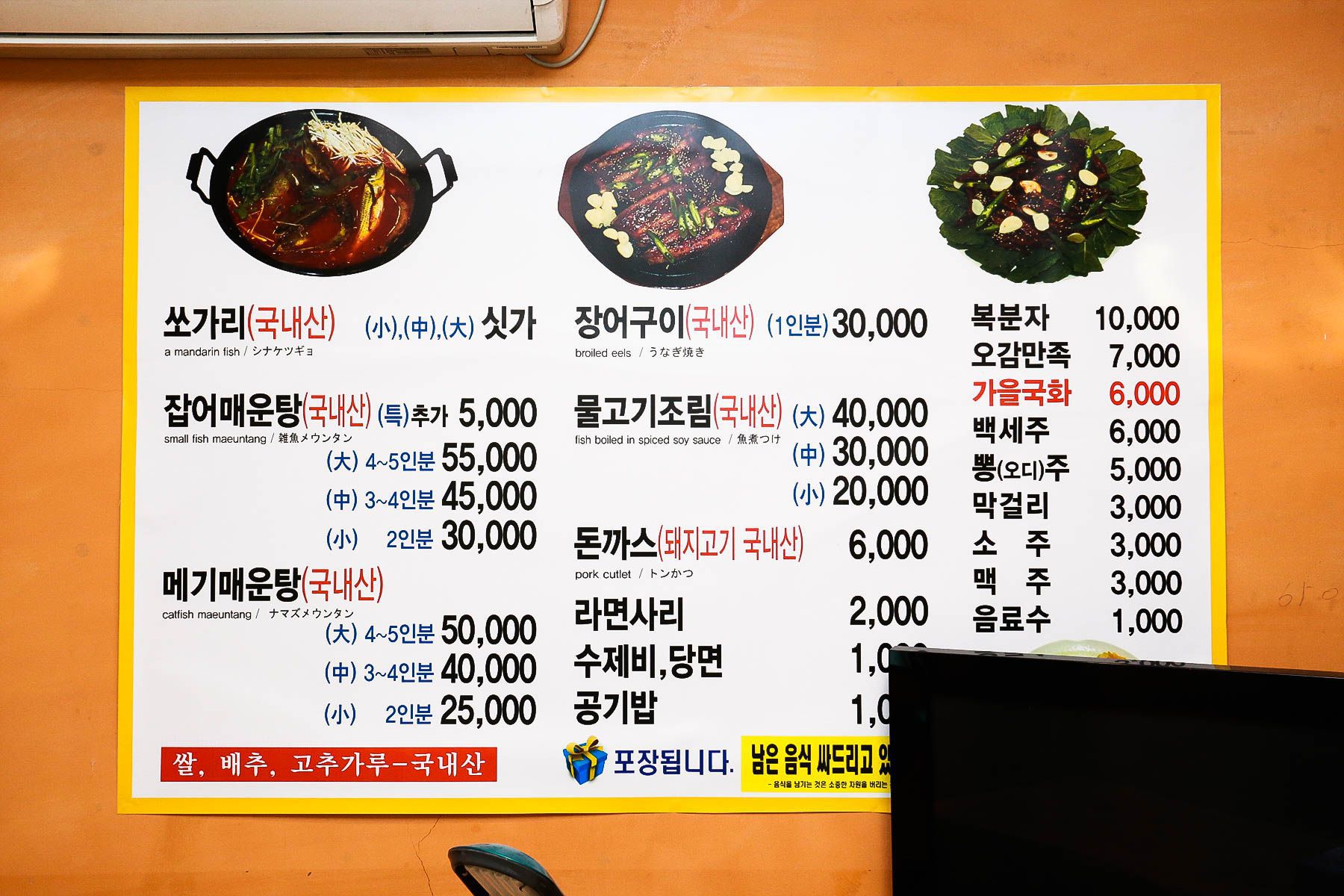 그외에도 장어구이, 물고기조림, 아이들이 먹을수 있는 돈까스도 준비가 되어 있답니다.