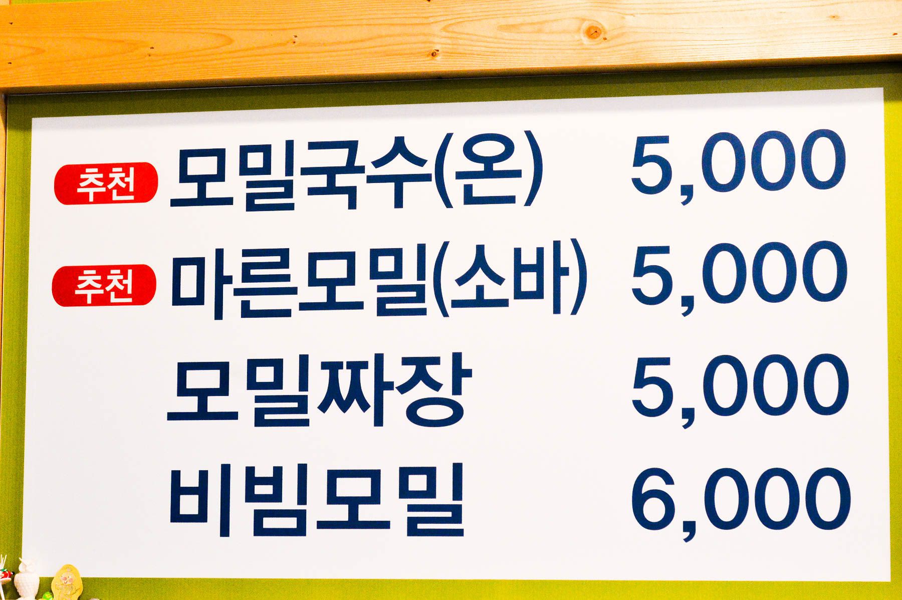 개운한 모밀국수부터 마른모밀,비빔모밀까지 다양하고 맛있는 메밀요리들로 가득합니다.