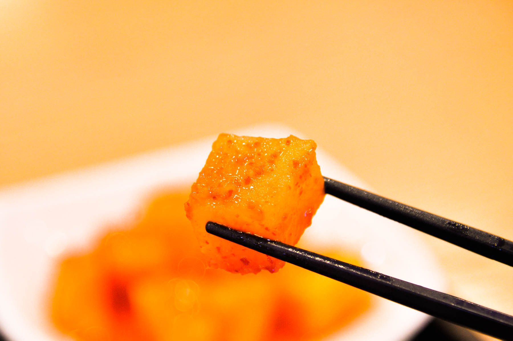 기본찬으로 깍두기, 단무지가 정갈하게 제공됩니다.