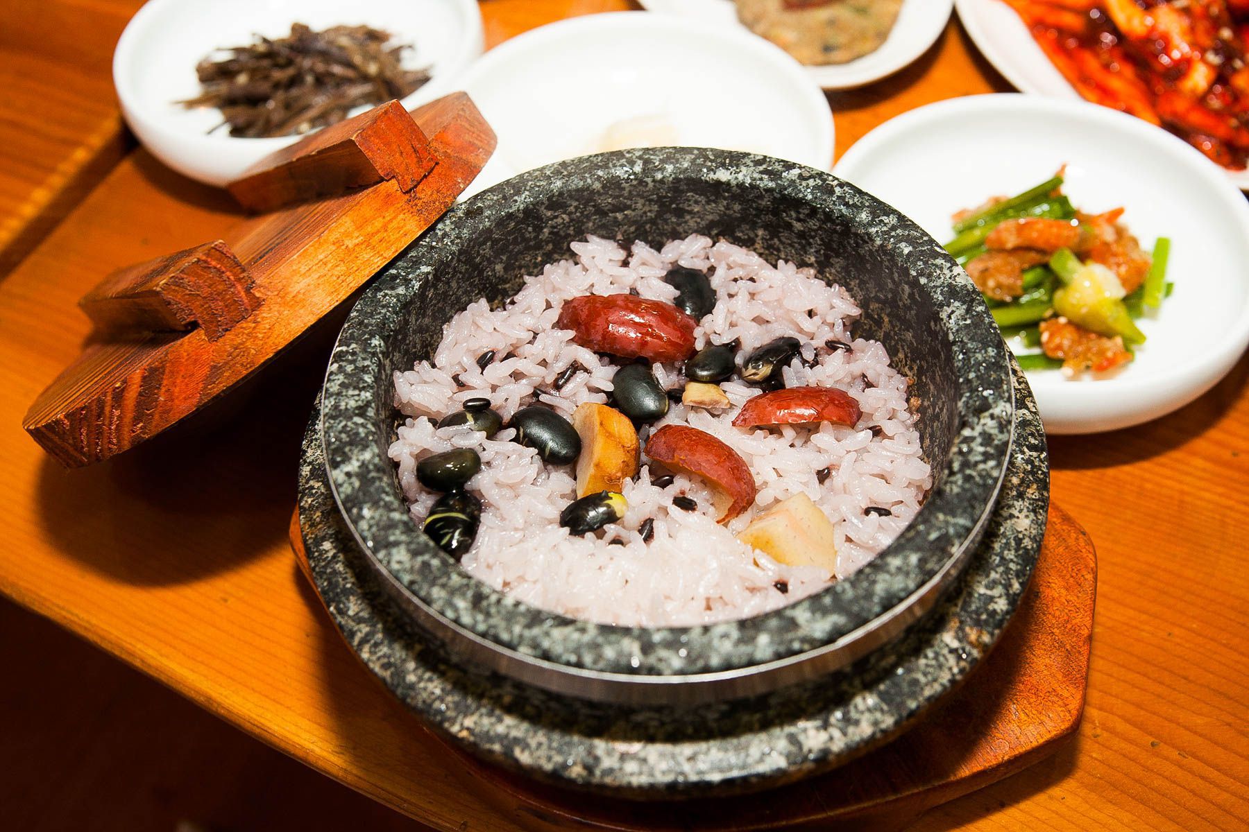 정식 주문시 미리 만들어 놓은 밥이 아니라 주문과 동시에 압력돌솥에 쌀과 대추, 은행 등을 넣은 영양돌솥밥을 준비해 주십니다~