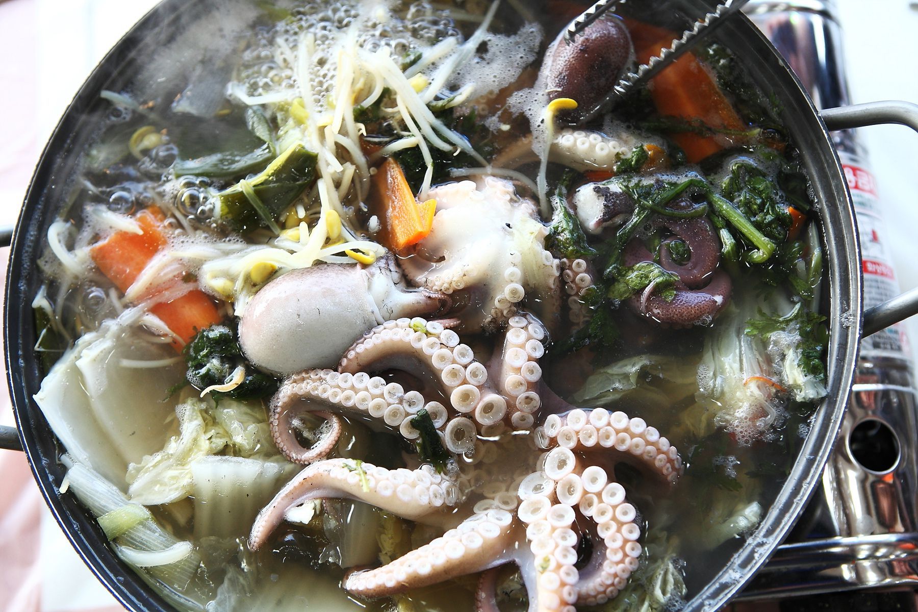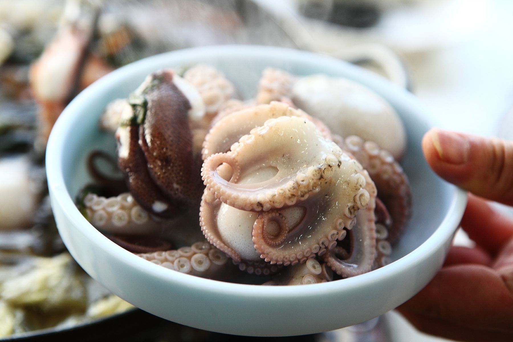 어린아이들부터 남녀노소 누구나 좋아하는 시원한 맛으로 버섯,야채와 함께 살아있는 쭈꾸미를 데쳐서 먹는 메뉴입니다.