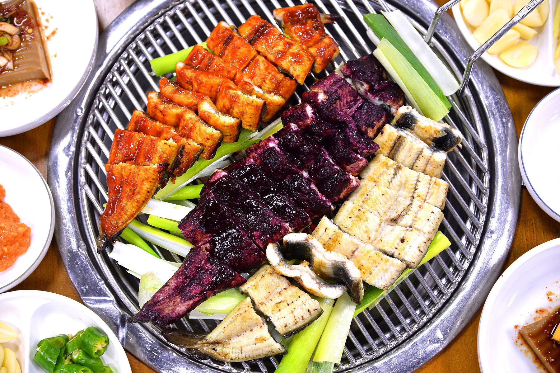 이렇게 파를 깔고 그위에 장어를 굽는답니다.