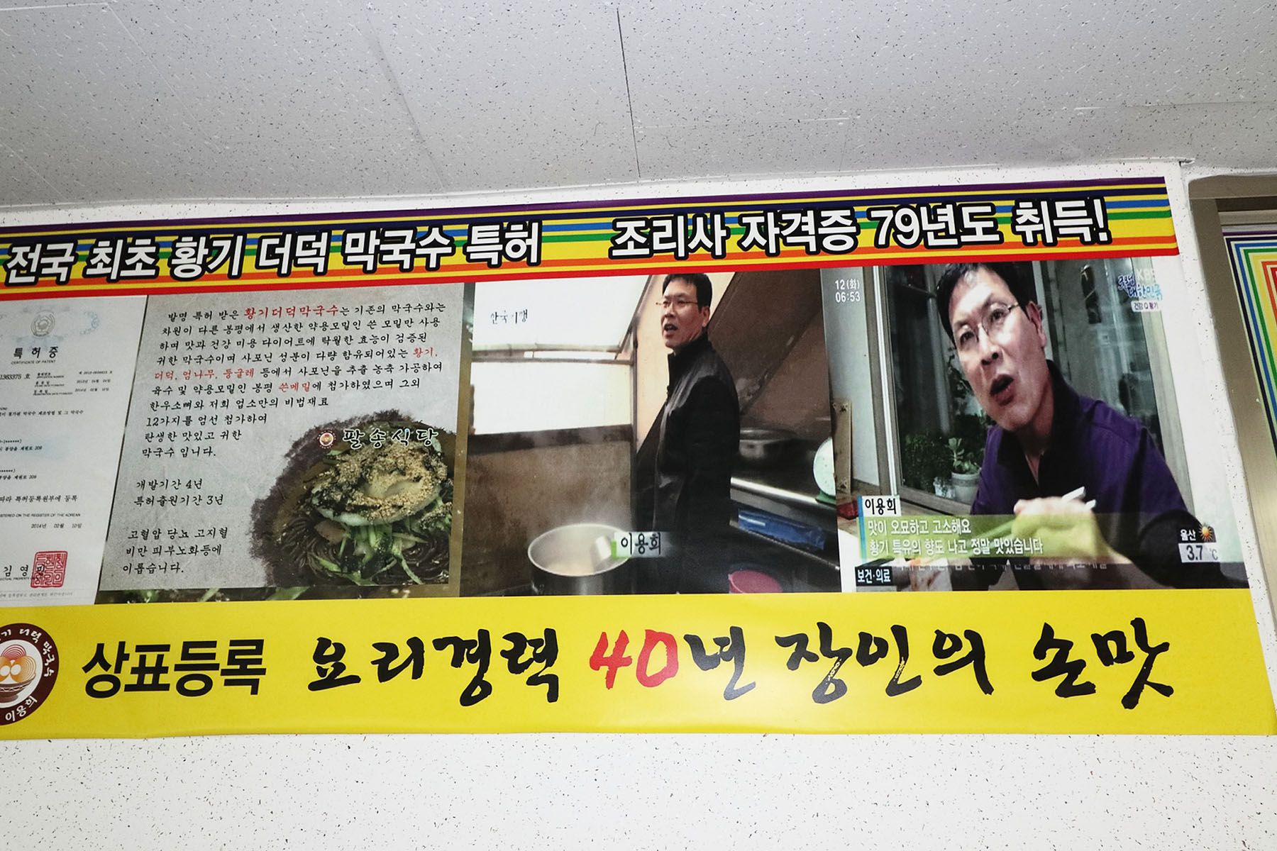 조리경력 40년 이용희 사장님의 새메뉴에 대한 끊임없는 노력으로 탄생한 황기더덕막국수는 특허받은 음식이랍니다.
