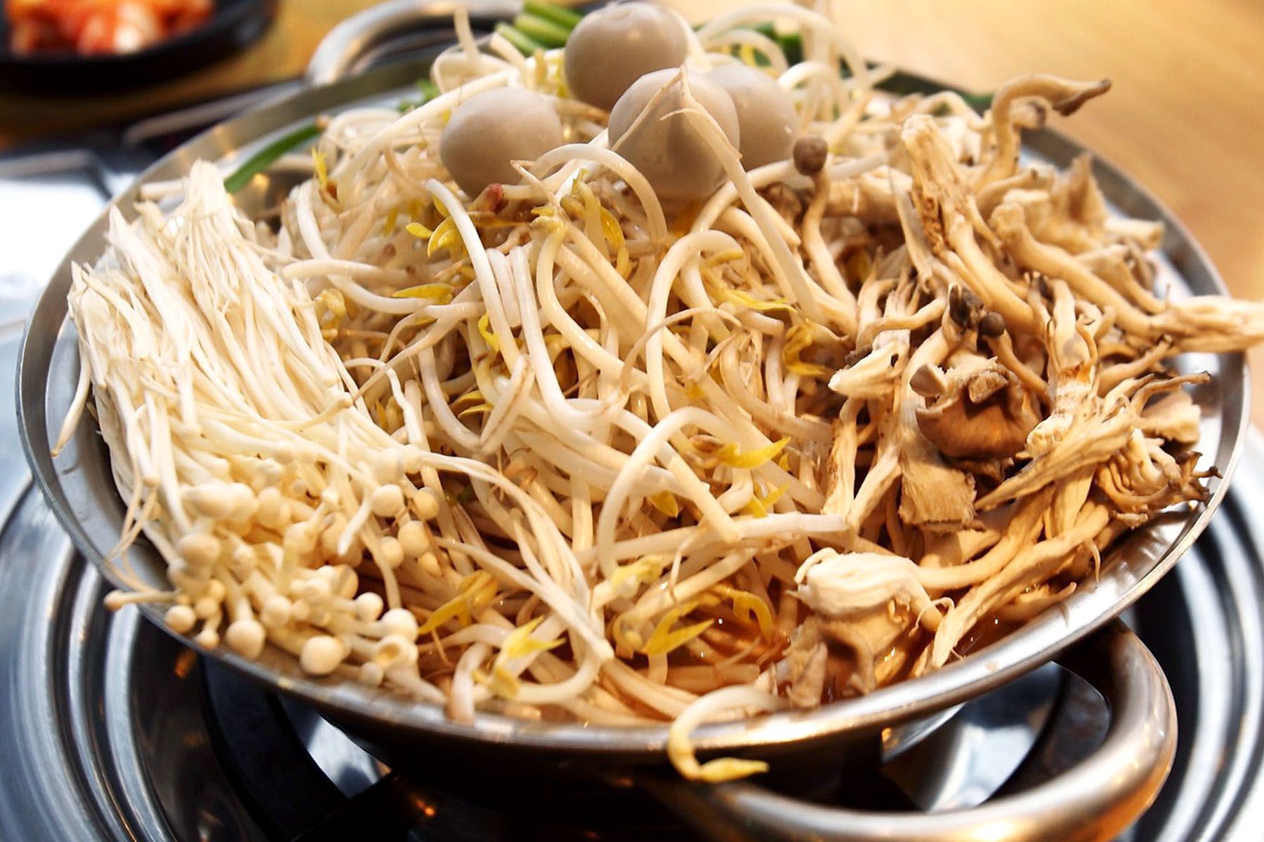 샤브샤브를 주문하면 냄비에 야채가 처음부터 담겨져 나오는데요,