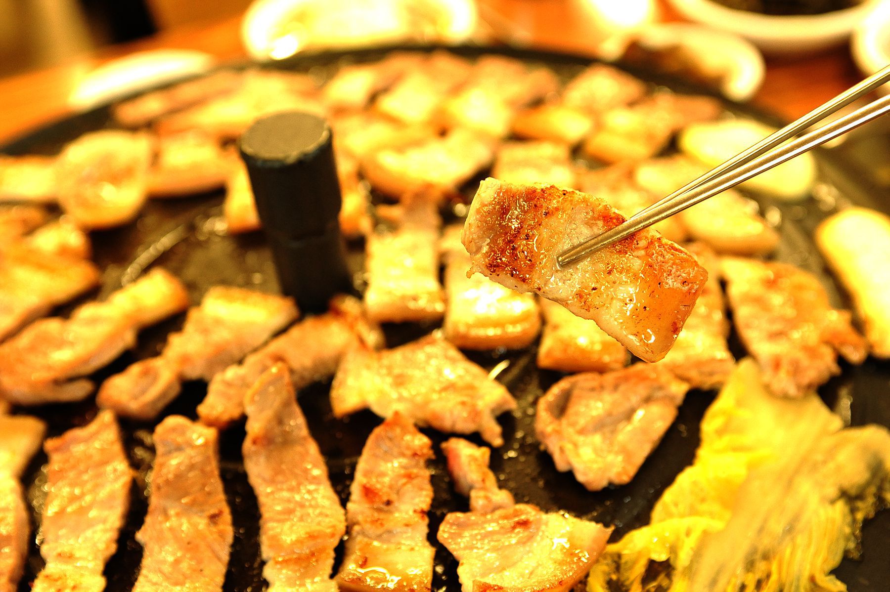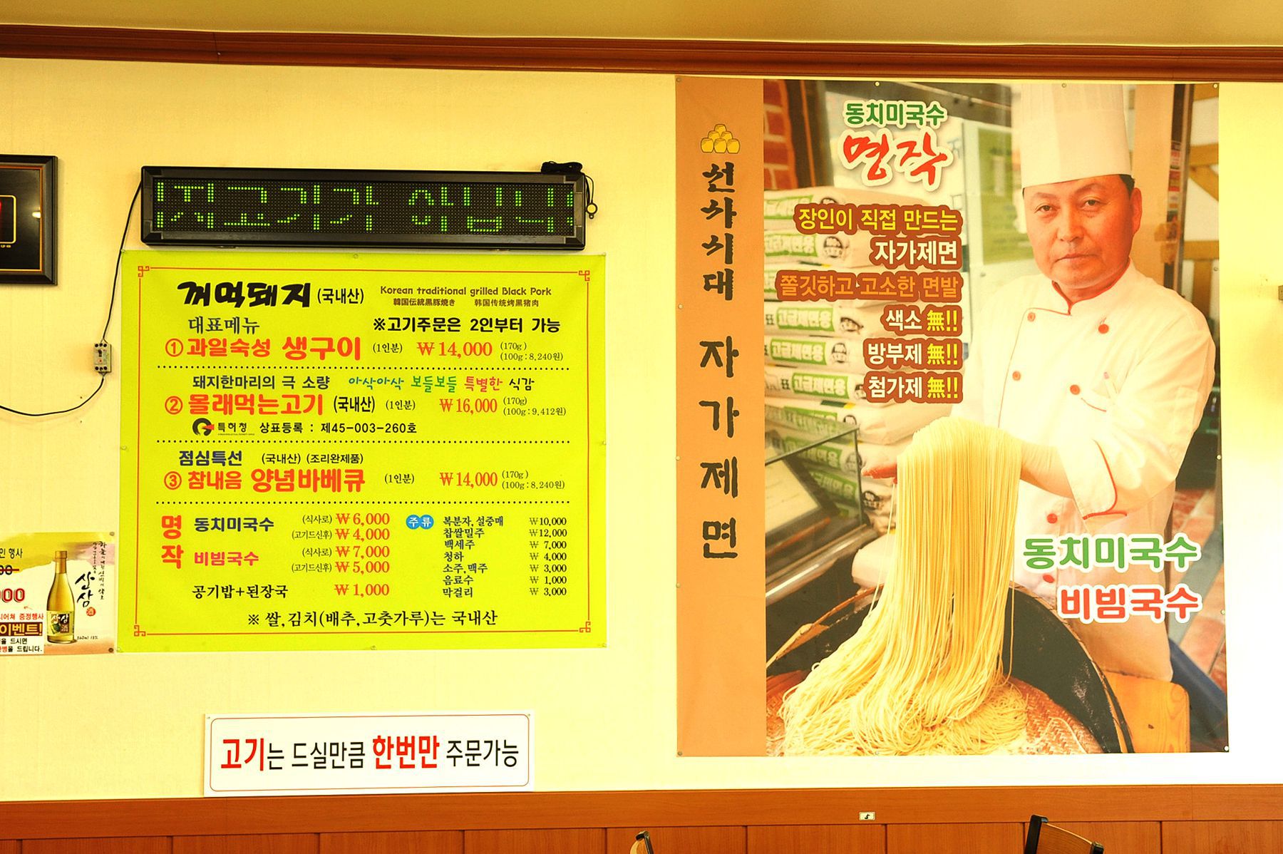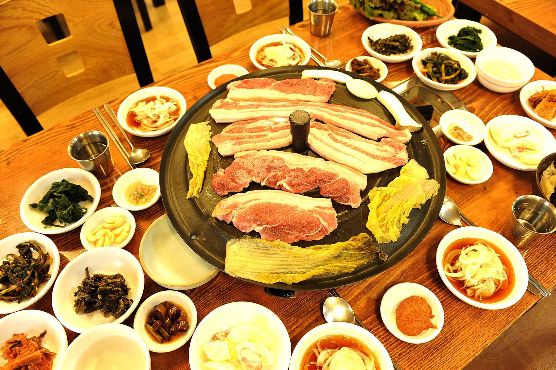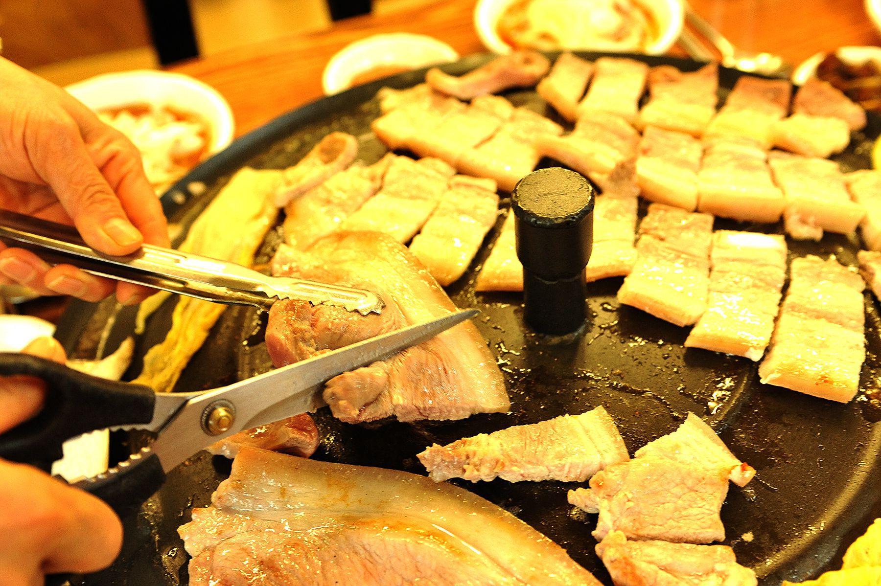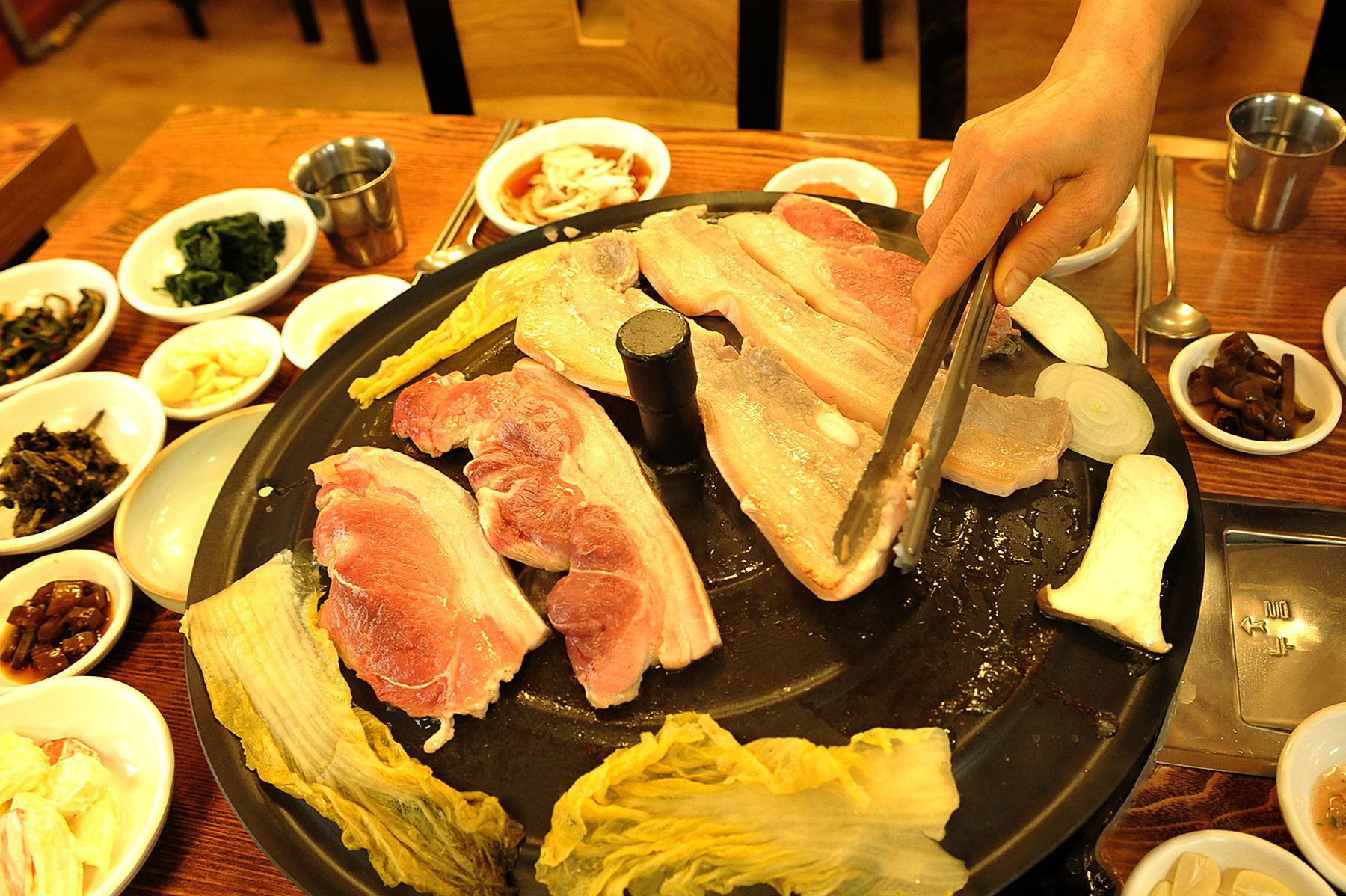 솥뚜껑위에 고기를 구워 기름기가 쫙~~빠져 더욱 담백한 고기맛을 즐길수 있습니다.