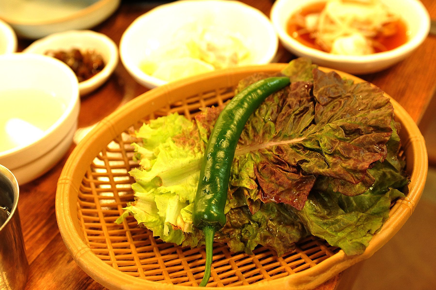 유난히도 싱싱해 보이는 야채와 맛깔스런 다양한 밑반찬으로 푸짐한 상차림을 제공하고
