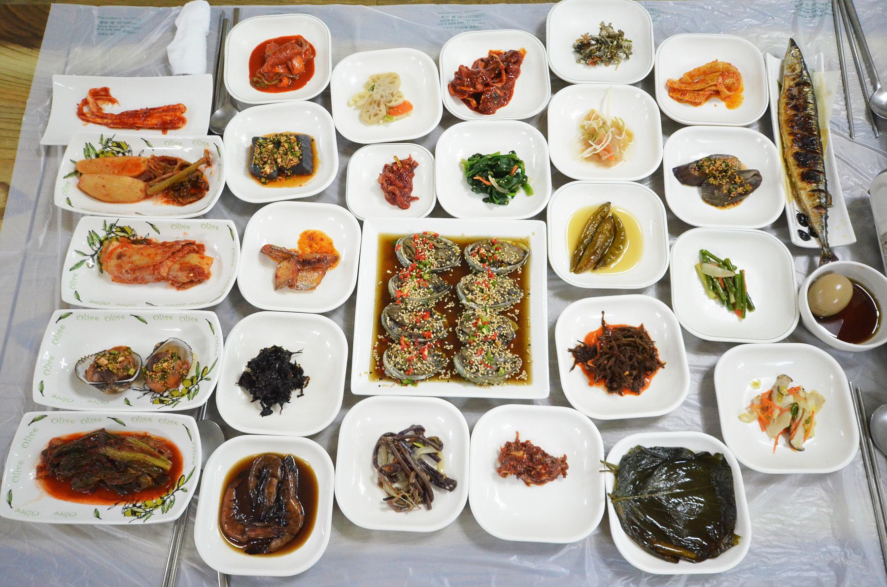 새우장, 꼬막, 꽁치구이, 게조림 등 25가지의 반찬에는 해산물이 많은데요,