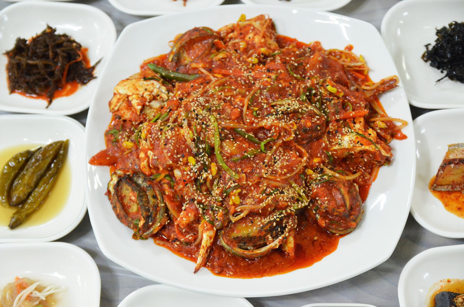 맛있게 양념이 밴 전복과 꽃게는 감칠맛이 있어 밥도둑이 따로 없습니다.