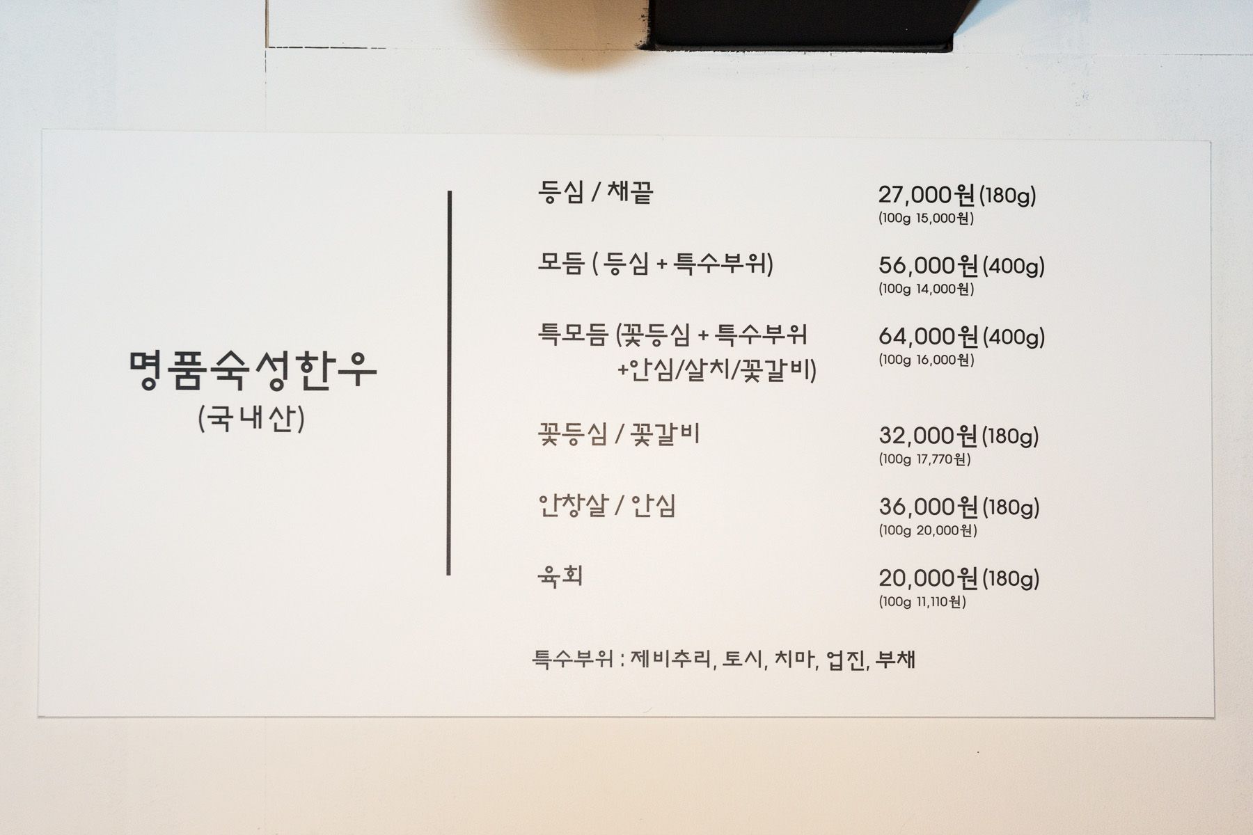 한우 특수부위별로 합리적인 가격으로 질 좋은 한우를 먹을 수 있는 '한우생각'