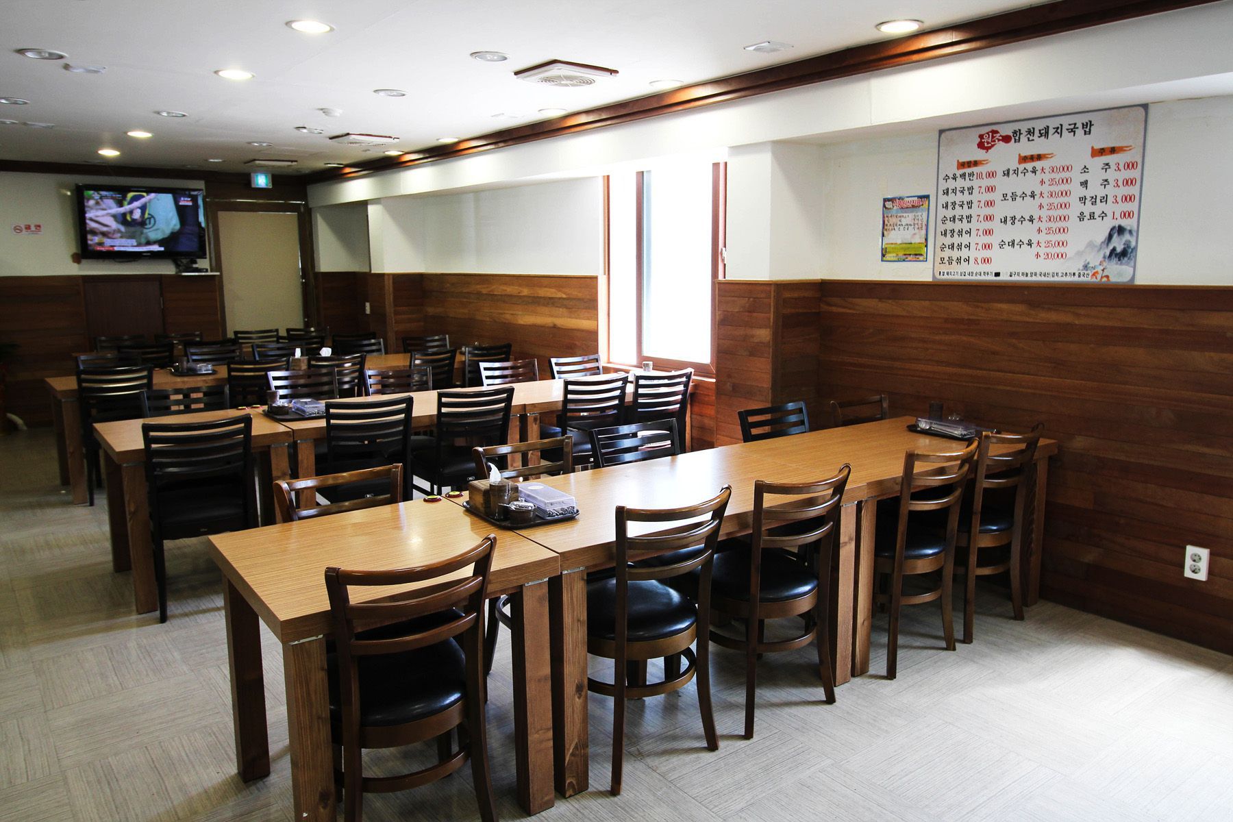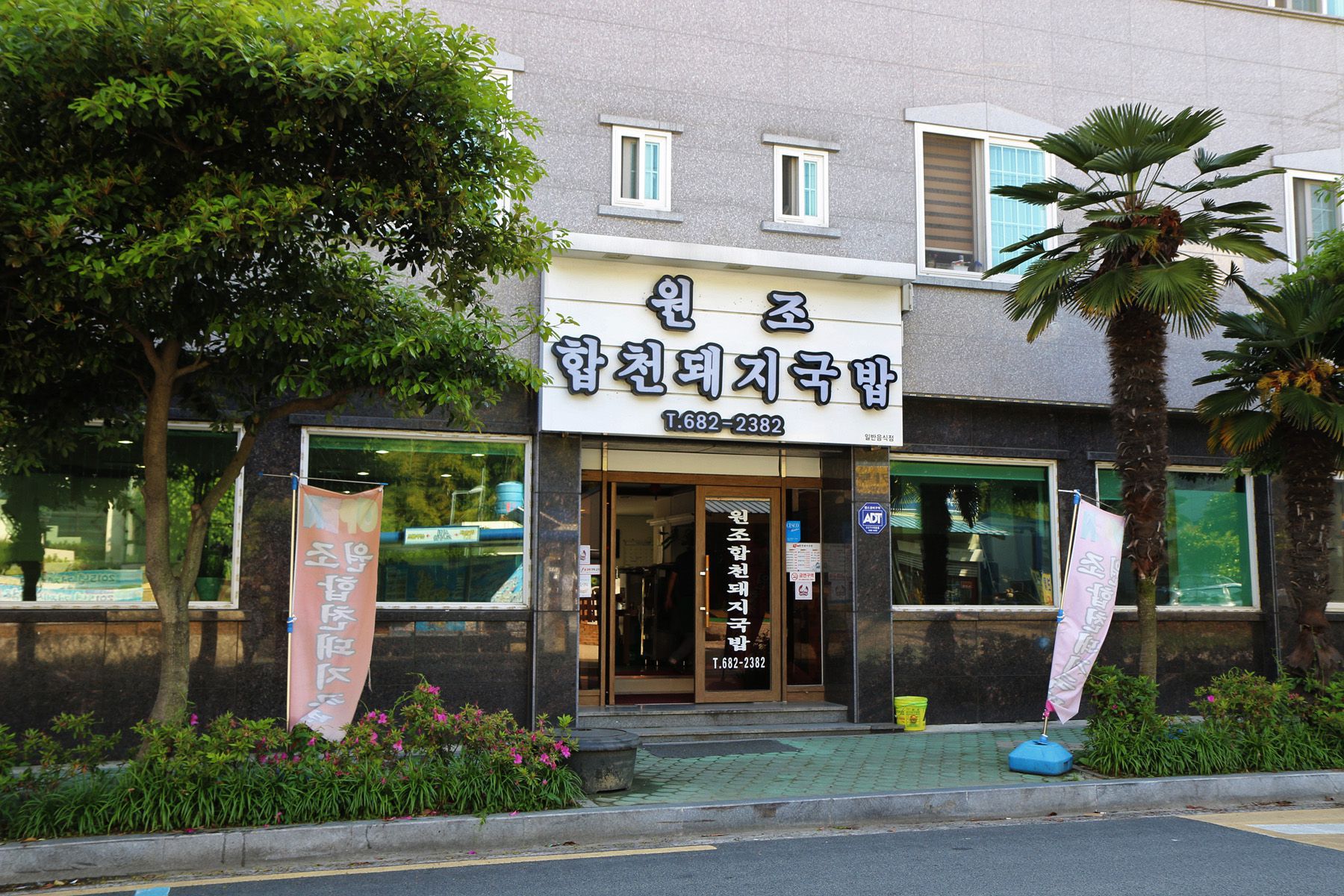 원조합천돼지국밥은 시립도서관 맞은편 노블레스빌 옆에 위치하고 있고