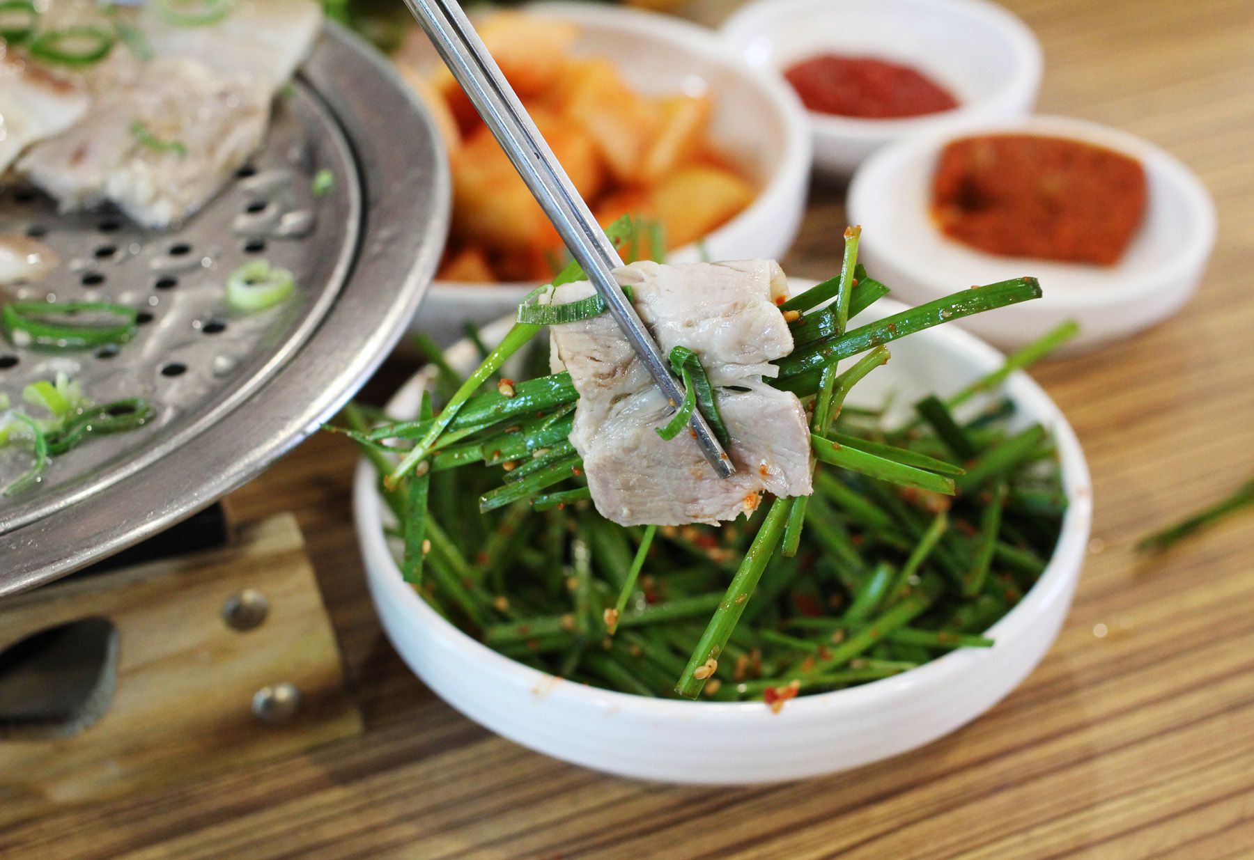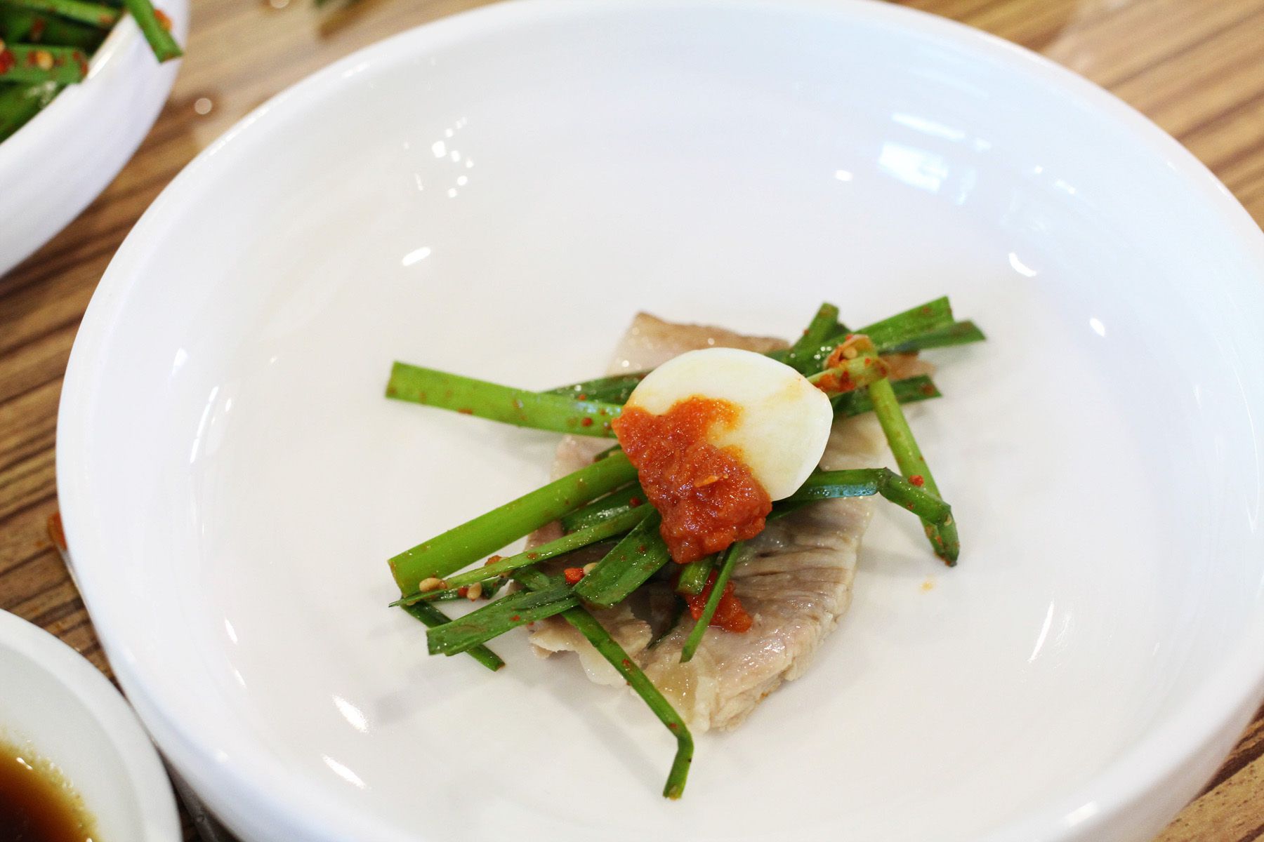 이렇게 부추와 함께 싸서 드시면 맛도 영양도 두배가 된답니다.