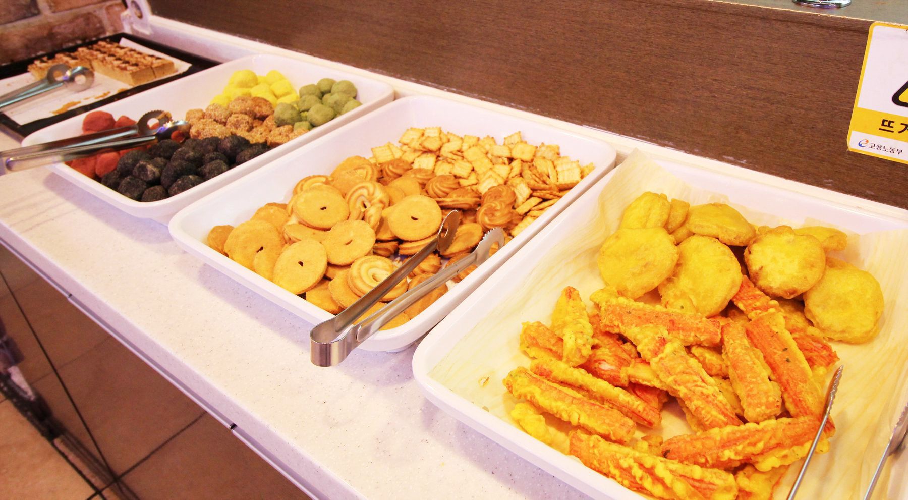 커피,코코아,식혜,과일,경단,케익등 후식도 준비되어있어 한곳에서 식사부터 후식까지 모든걸 해결할 수 있습니다.