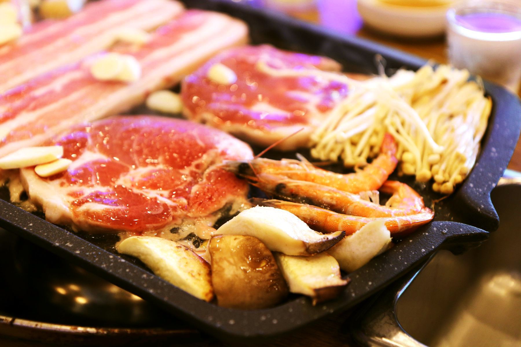 와인삼겹,떡갈비,소시지,쭈꾸미,새우,육회와 양념고기류 등 다양한 종류가 준비되어있습니다.