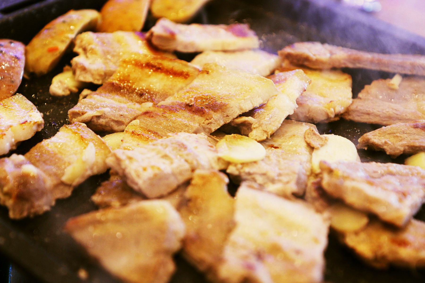 음식들은 뷔페식으로 준비되어 있으며 돈삼겹,돈목살,항정살,오리로스.닭고기부터 시작해