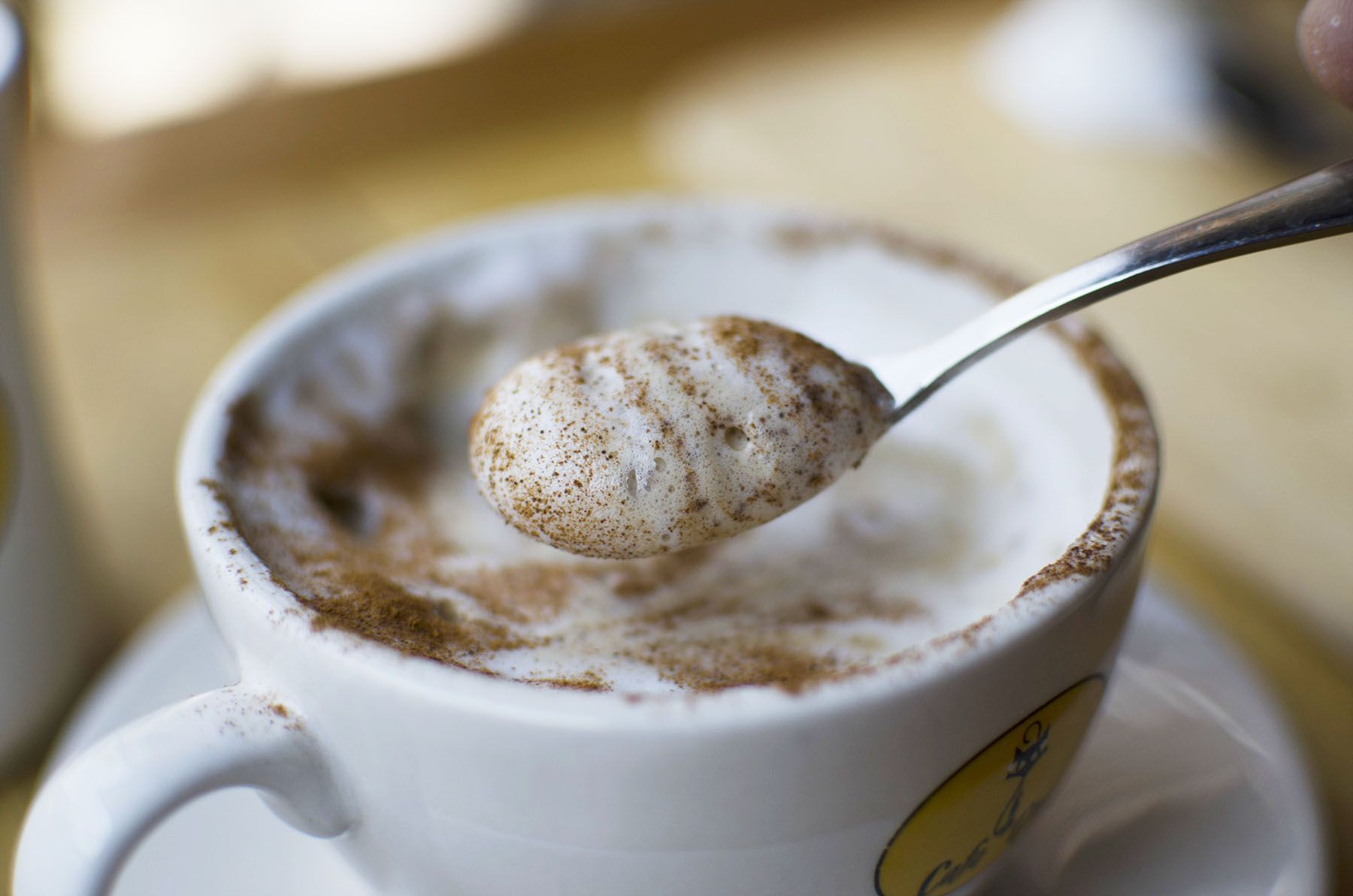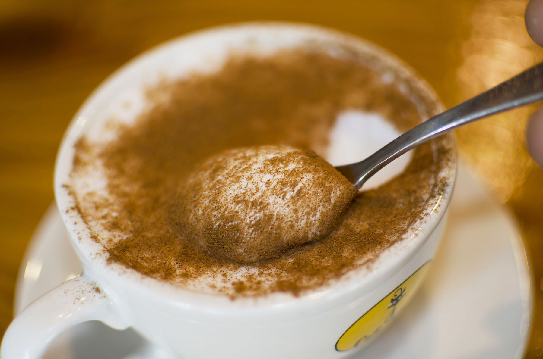 이렇게 떠서 드실 수 있을 정도의 풍부한 거품양과 시나몬도 듬뿍 뿌려 한층 더 맛있답니다.
