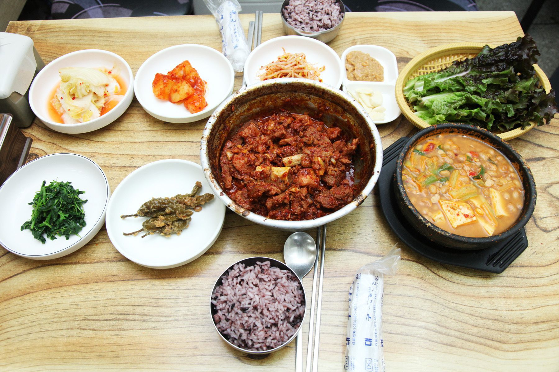쌈과 밑반찬도 푸짐하게 나오는데, 반찬은 모두 사장님이 매일 직접 만들어서 제공하고 있어요.