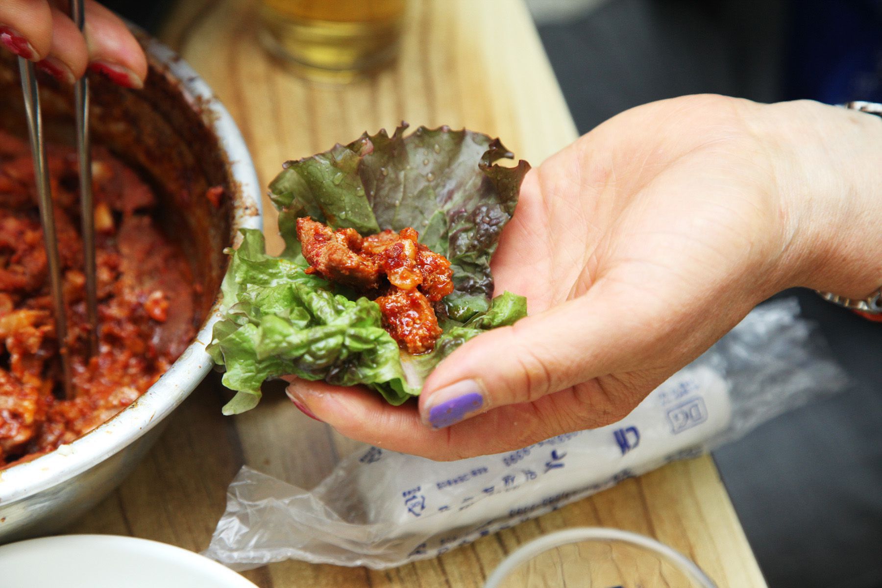 갈비를 그냥 드셔도 정말 맛있지만 쌈을 싸서 드시면 더 맛있답니다.