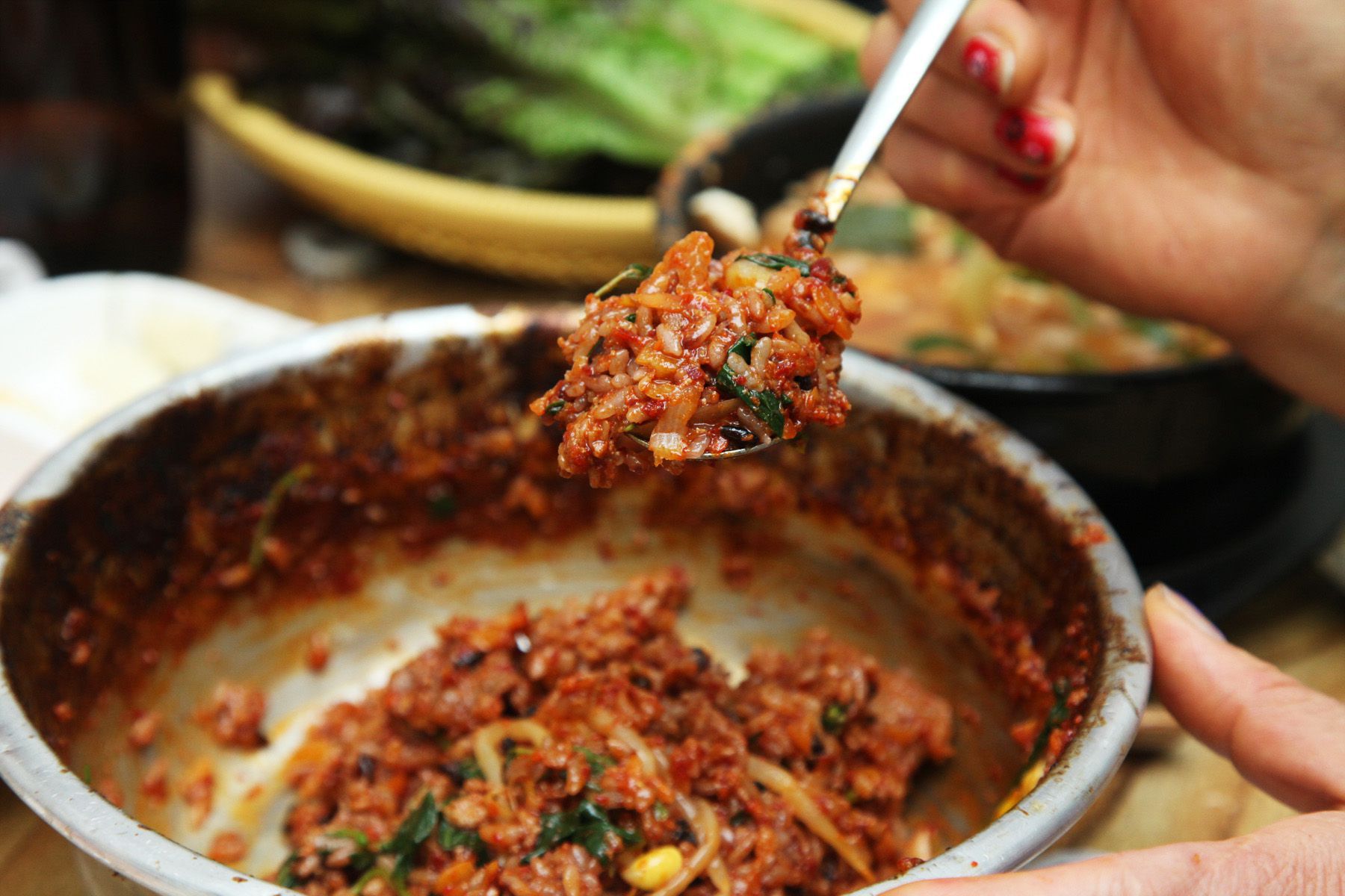 맛있게 매콤하고 입맛 당기는 찜갈비의 양념은 남기기 아깝지요.