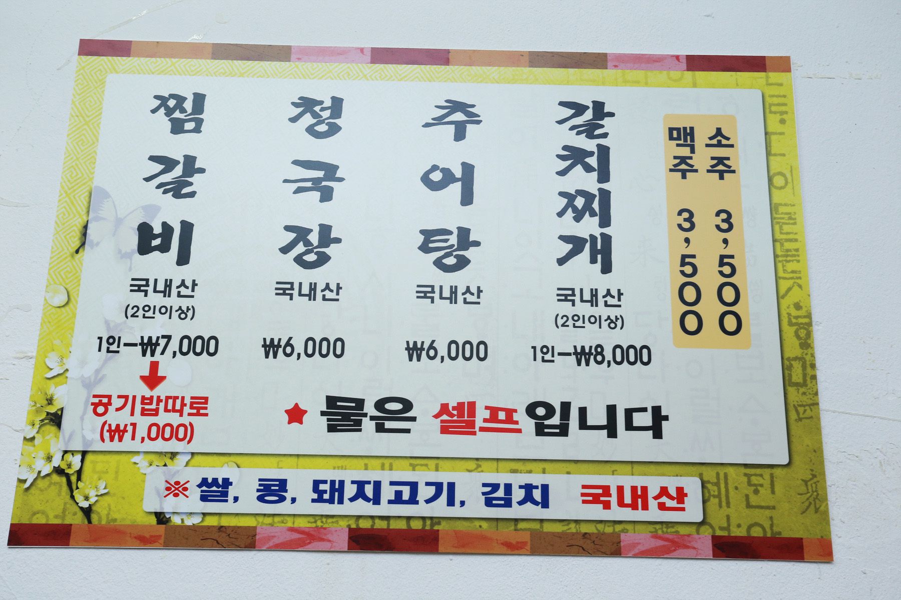 청국장 메뉴가 있어 6,000원인데, 찜갈비를 시키시면 다 드실 수 있으니