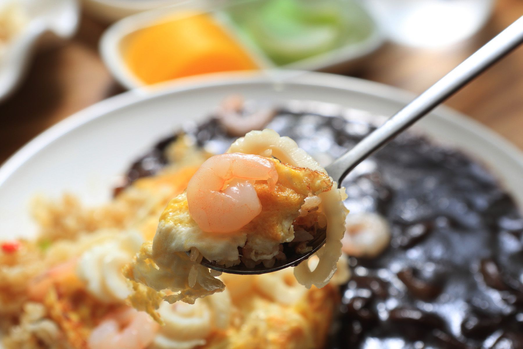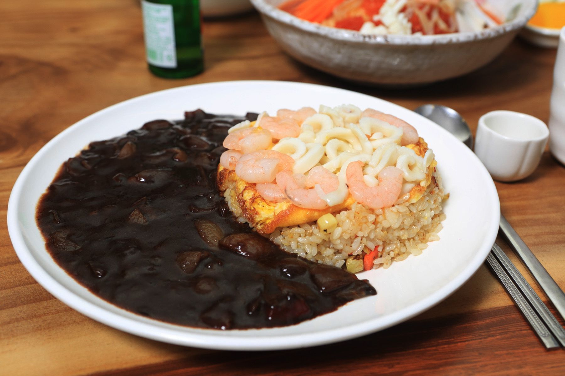 윤기가 자르르 흐르는 아이들이 좋아하는 중화요리 1등 짜장면과 새우가 한가득 올려져 있는 볶음밥까지 다 맛있답니다.
