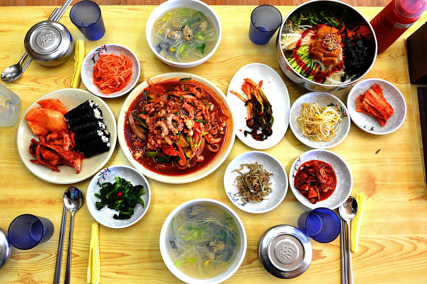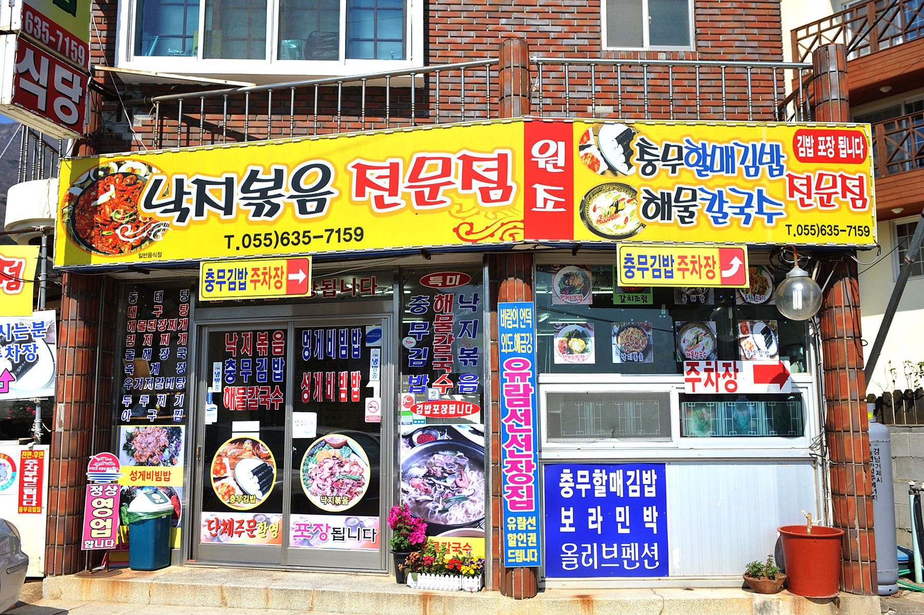 충무김밥외에 낙지볶음, 멍게비빔밥, 해물칼국수 등이 준비되어 있어