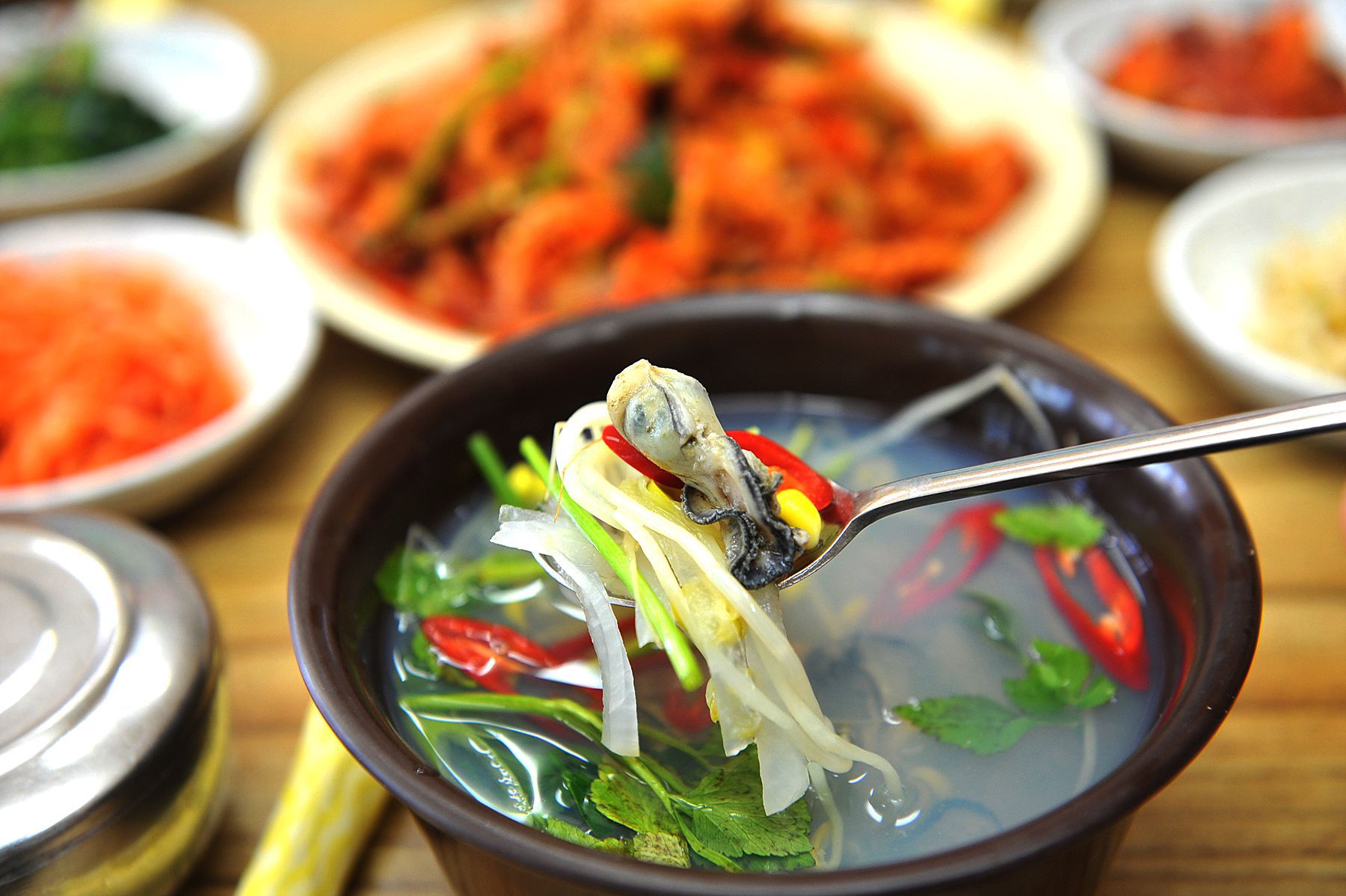 굴과 콩나물 그리고 다양한 재료들이 들어간 굴해장국은