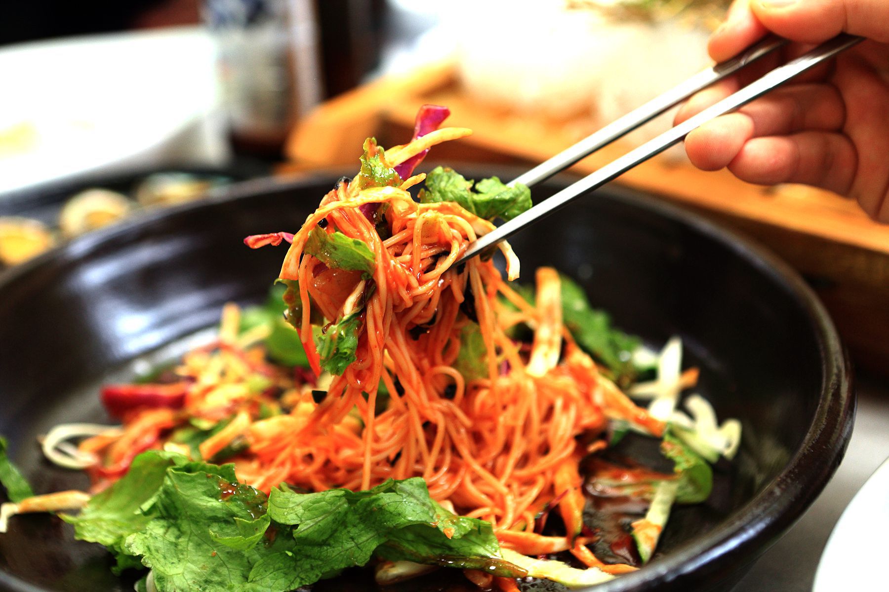 제주 돌미역은 사계절 제공되고 잡채,생선껍질을 야채랑 소스를 곁들여 먹으면 더욱 맛있게 드실수 있습니다.