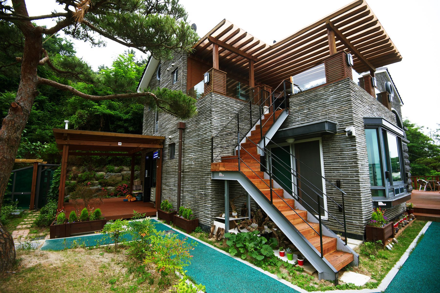 깔끔하고 세련된 건물에는 실내외 차마시는 공간이 예쁘게 마련되어 있어