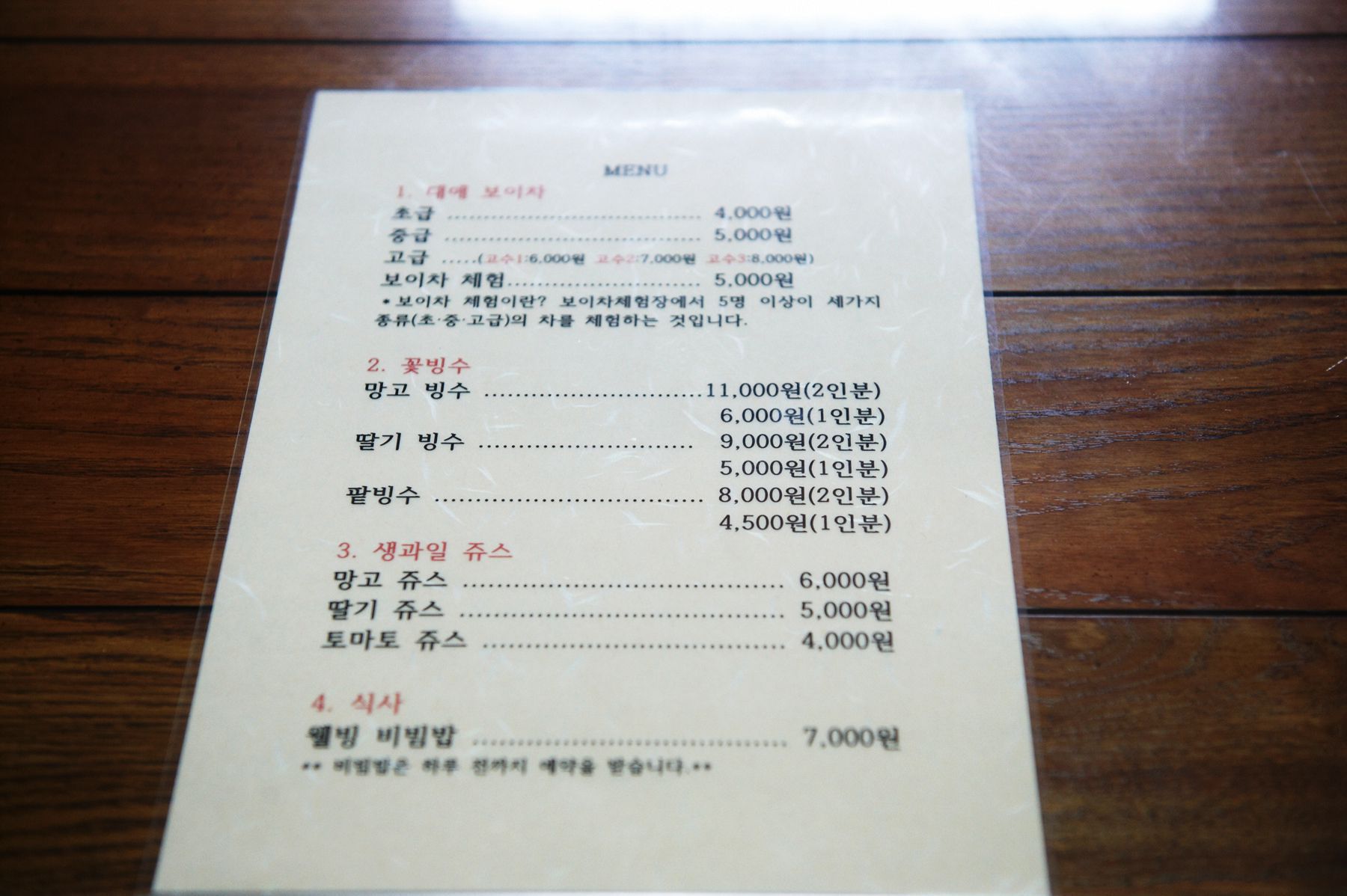 대애 보이차 전문점인 카페라서 보이차가 주를 이루고 있고