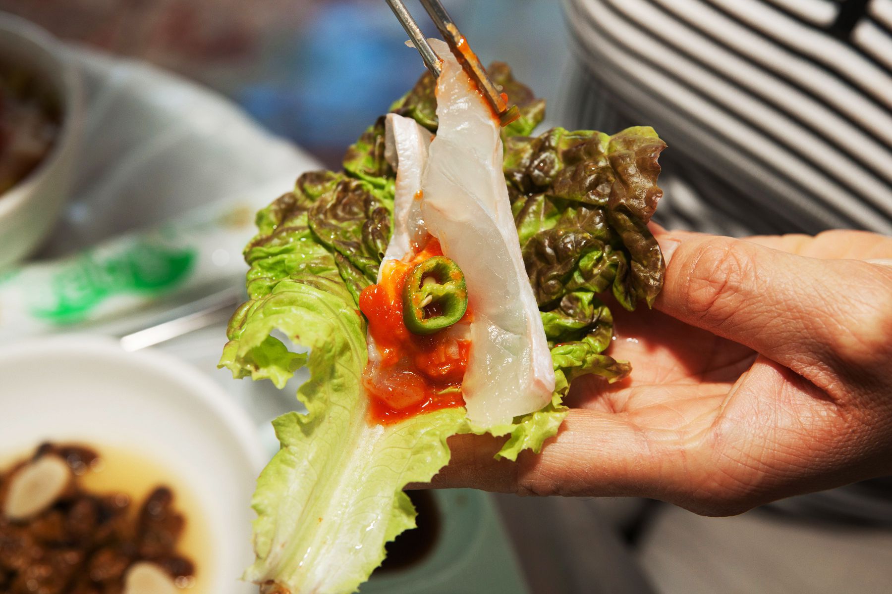 광어는 크고 싱싱해서 고소하고 씹을수록 달콤합니다.