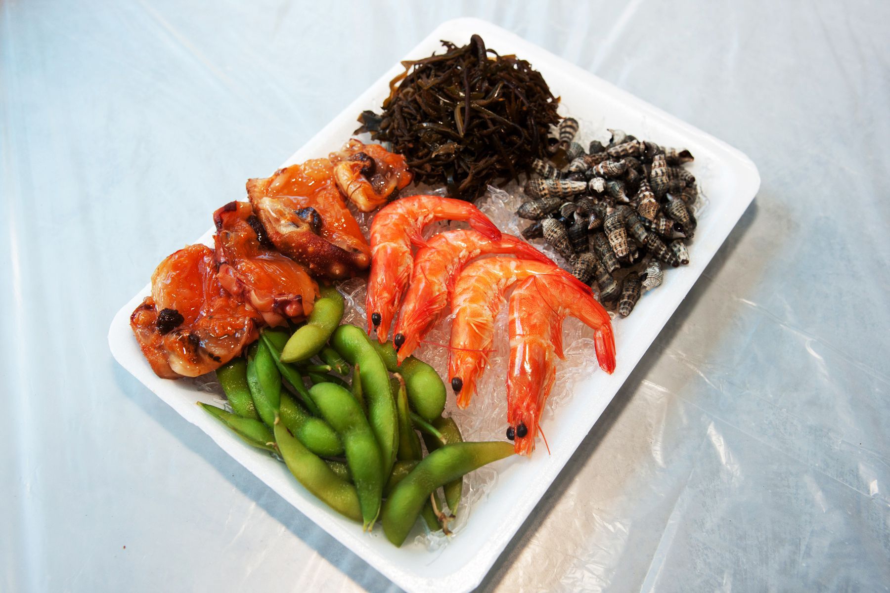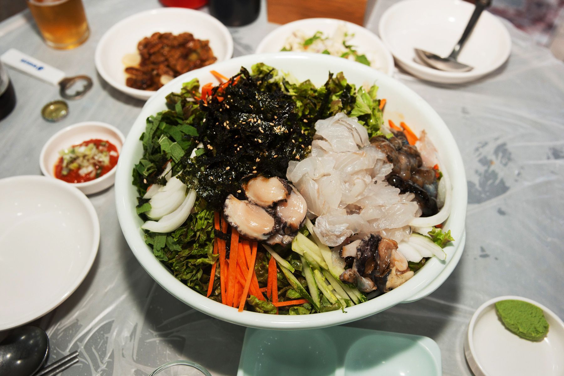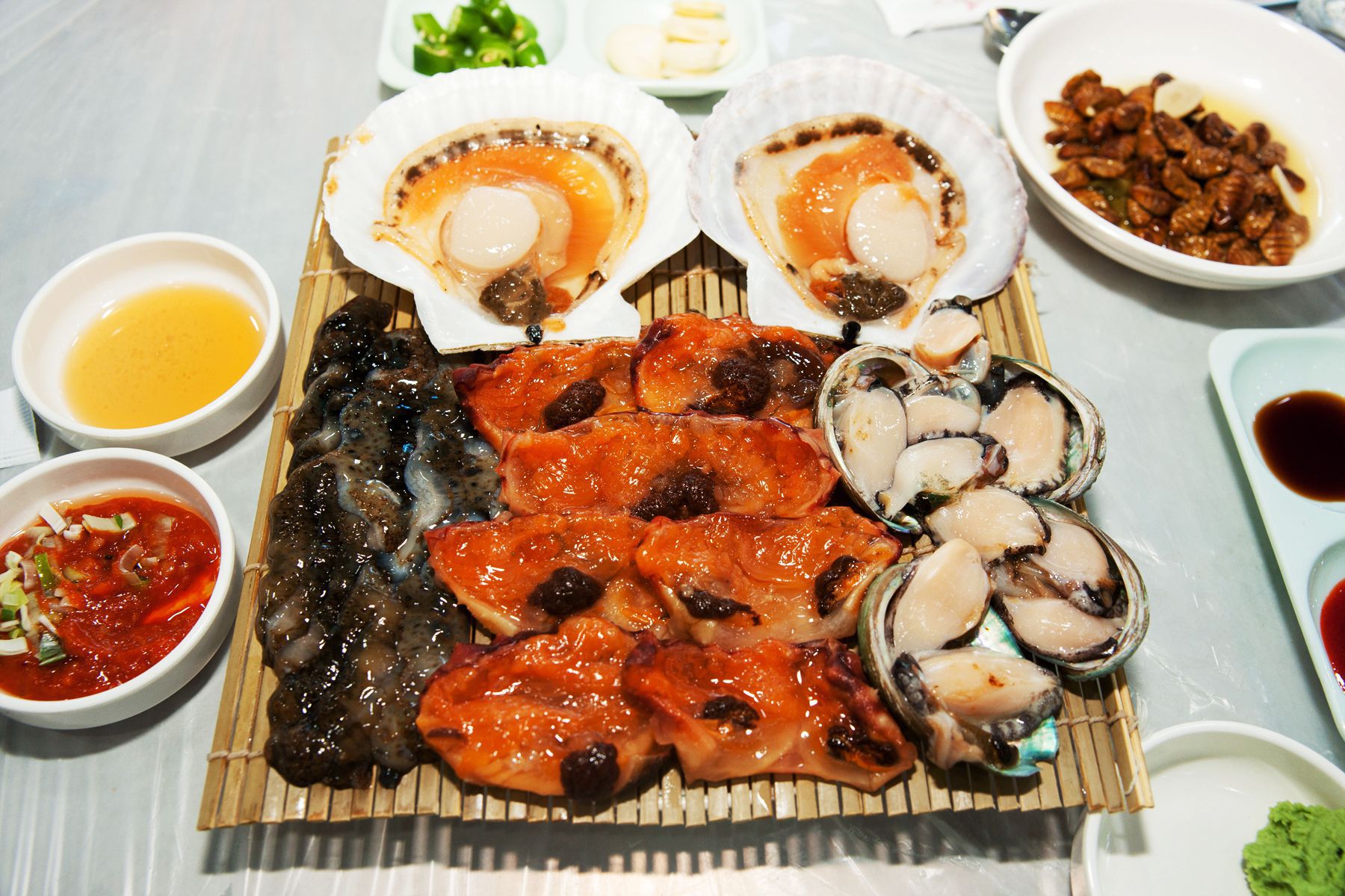 해삼, 멍게, 전복, 가리비 등 싱싱해야 제맛인 해산물들이 한자리에 모인 모듬이예요.