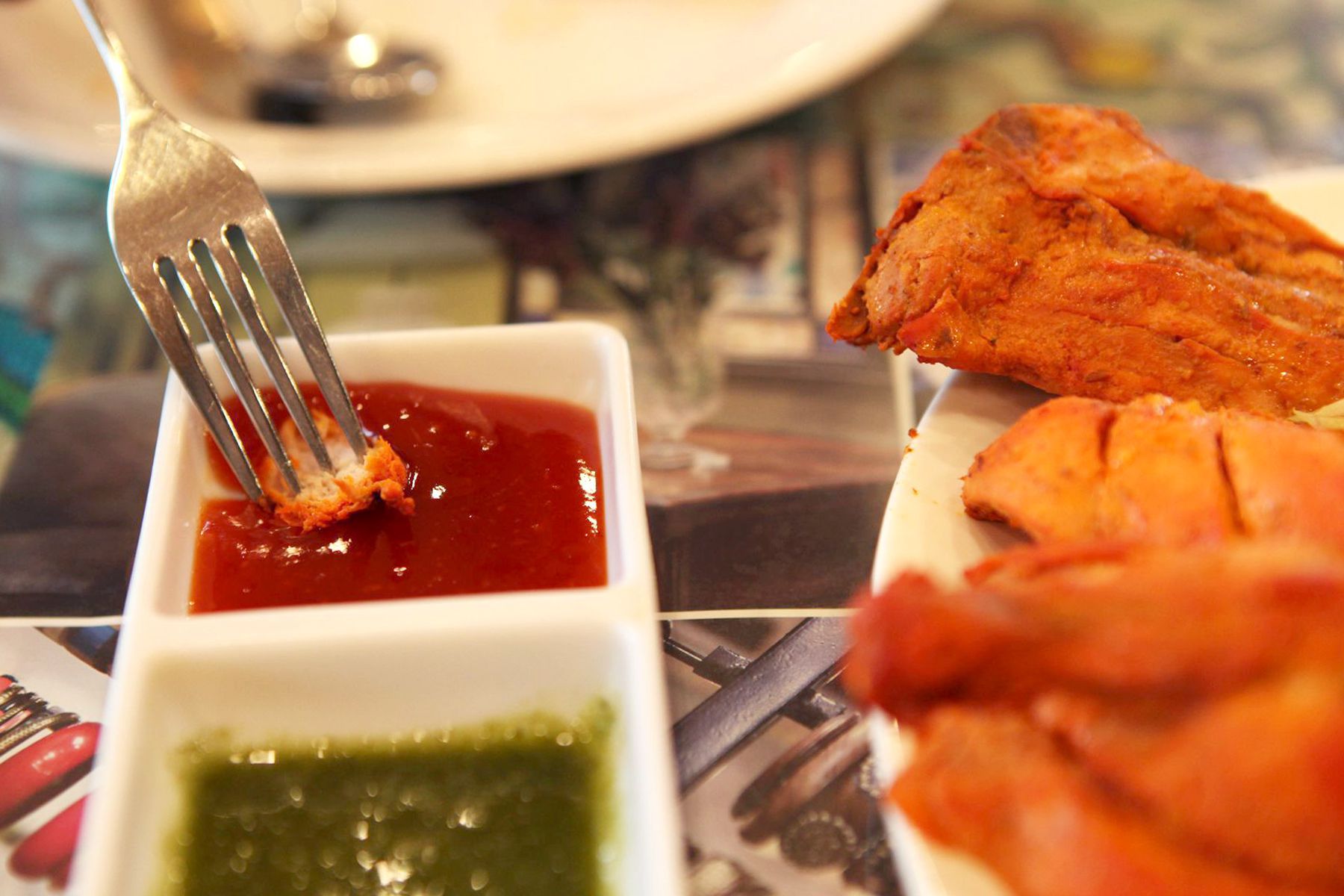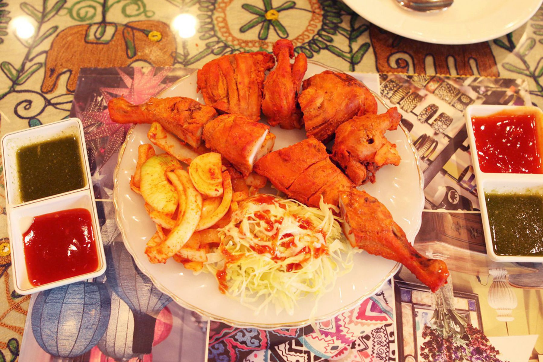 탄두리치킨은 전통 향신료로 양념한 후 화덕에서 구워 기름기를 쫙빼서