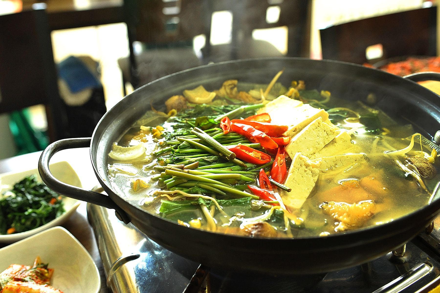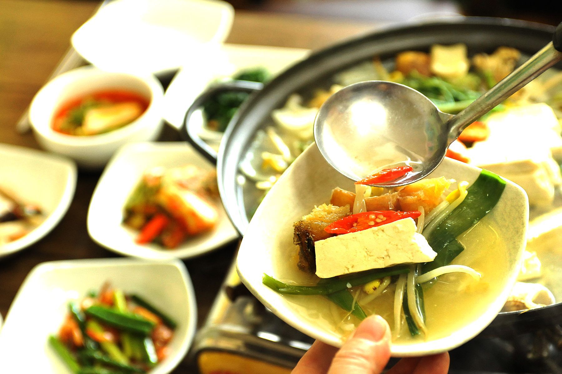얼큰한 국물에 다양한 야채, 그리고 맛있는 황태가 잘 어울려져