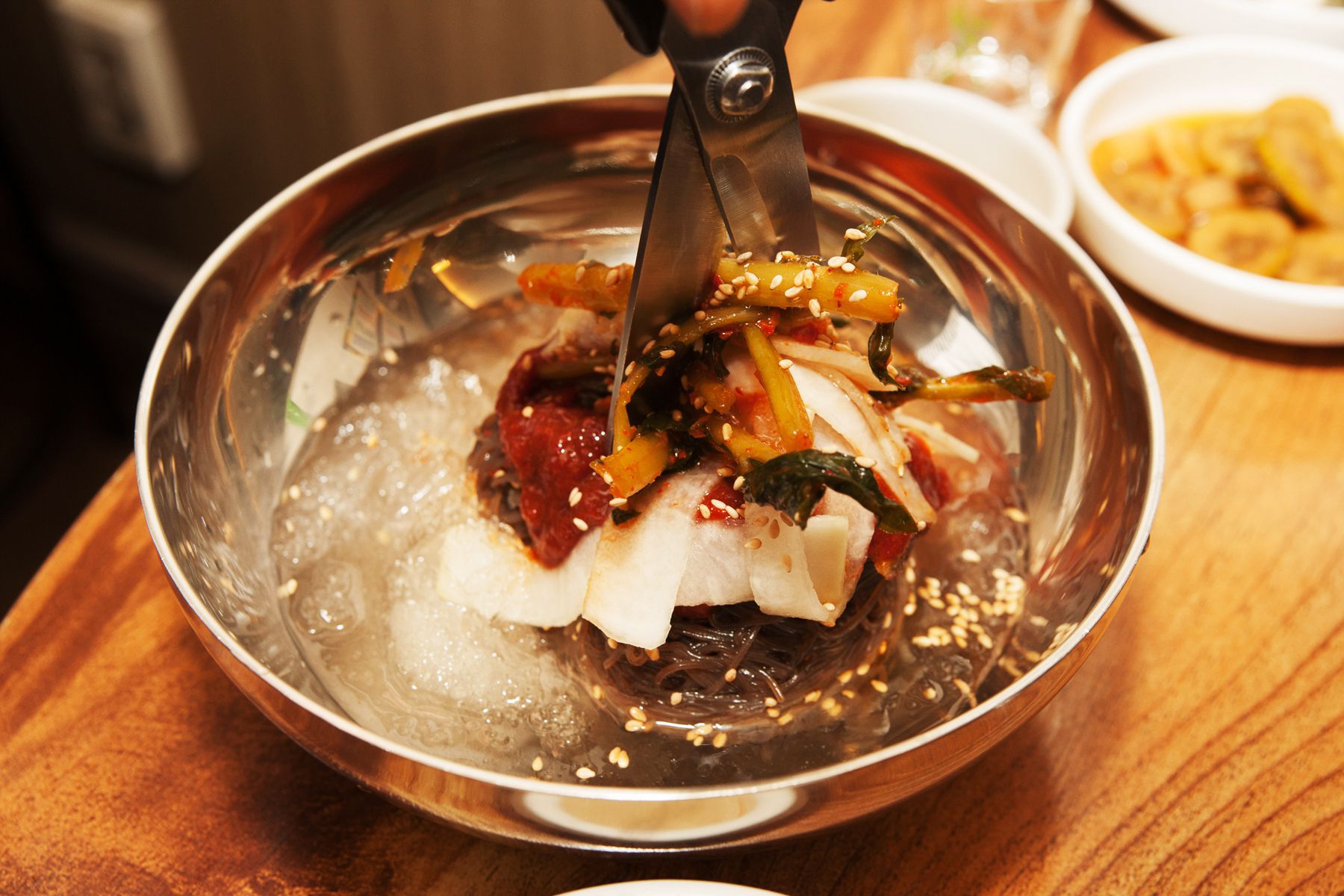 고기의 마무리는 보기만해도 면발이 쫄깃하고 국물이 시원한 냉면이죠?